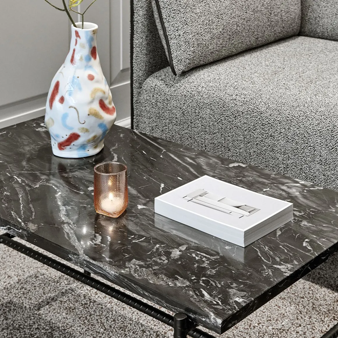 La table basse Rebar Marbre a été réalisée par Sylvain Willenz. Les matériaux choisie sont l’acier et le marbre. Le design juxtapose l’armature des barres en acier qui est renforcée avec le dessus en marbre noir qui créer une esthétique équilibrée. Les tables sont disponibles dans trois tailles différentes dans des formes rondes et rectangulaires.