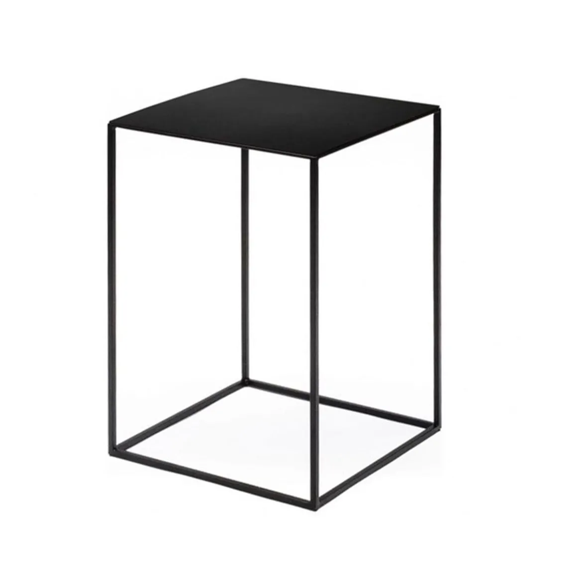 Matériaux : table basse profilée en acier carré, plateau en tôle d’acier épaisseur 2 mm, peinture époxy, ou bois massif