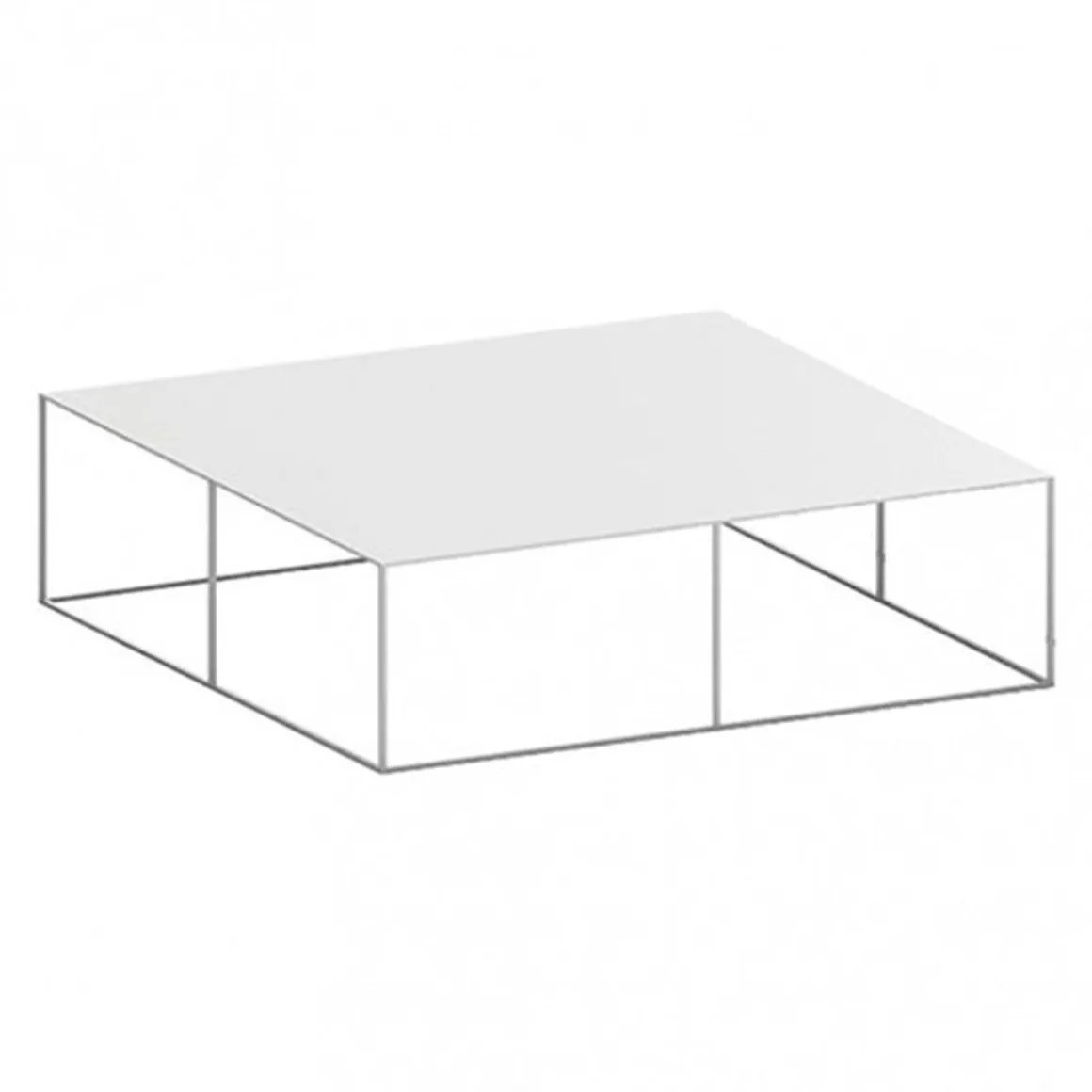 Matériaux : table basse profilée en acier carré, plateau en tôle d’acier épaisseur 2 mm, peinture époxy