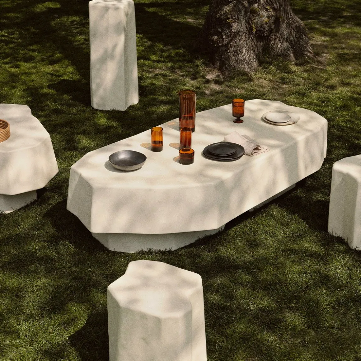 Inspirée des formations rocheuses volcaniques uniques de l’île ancienne de Staffa en Écosse, la collection Staffa se compose d’une série de meubles audacieux. Ce nom, qui signifie pilier en vieux norrois, est un hommage à chaque pièce, entièrement réalisée en béton renforcé de fibres de verre, au moyen d’un procédé de moulage innovant qui lui confère une forme brute et irrégulière rappelant des blocs de pierre taillée. Adaptée à une utilisation intérieure et extérieure, la table basse Staffa est une pièce intrigante qui brouille la frontière entre art et fonctionnalité. Placez cette pièce contemporaine au centre de votre salon ou de votre coin salon extérieur et regardez-la susciter naturellement la conversation.