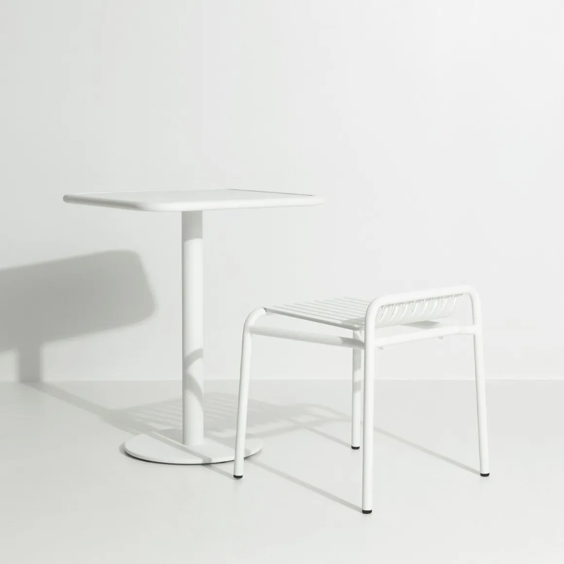 Table carré bistrot Week-end de Petite Friture par le studio Brichet Ziegler. La table bistrot vient de la collection week-end. Pratique et élégante avec son plateau carré elle trouvera sa place dans votre balcon ou terrasse. En aluminium, elle est légère et sa peinture époxy grainée et mate la rend résistante au UV et à l’eau.