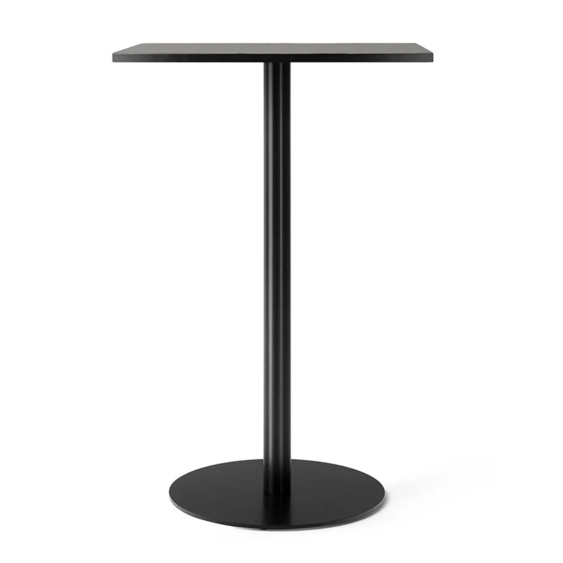 Matériaux : base en acier et aluminium extrudé ; plateau en placage de chêne teinté et laqué noir ou linoléum et charbon de bois