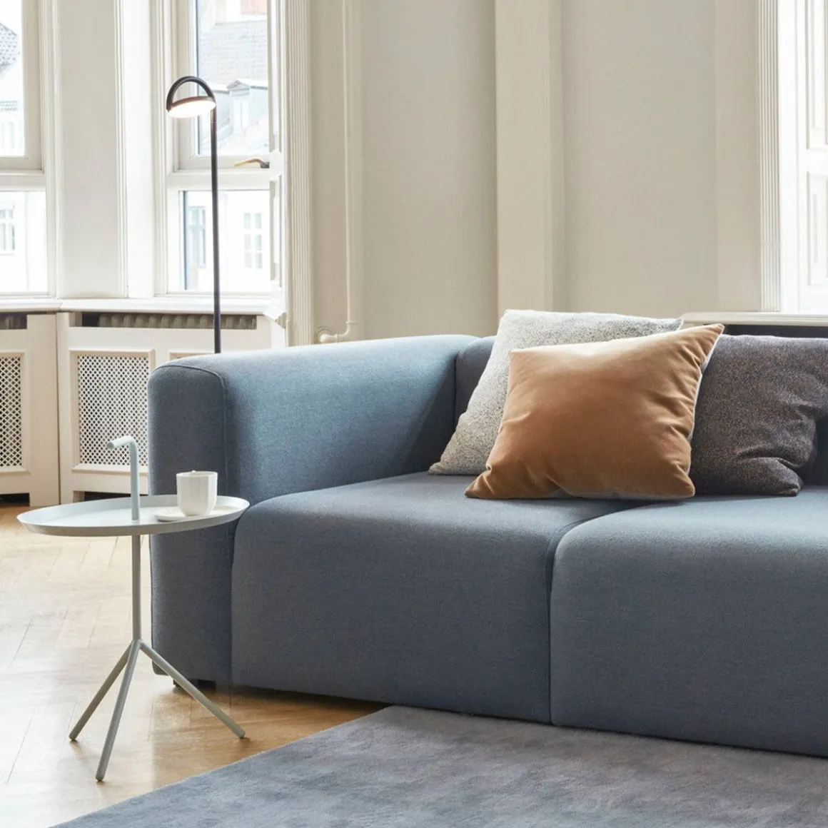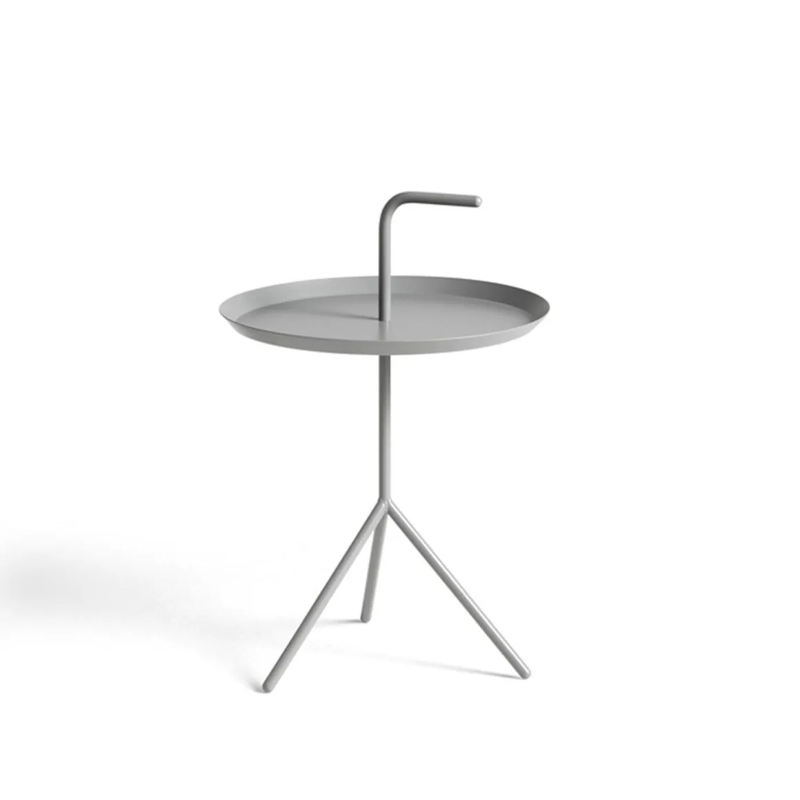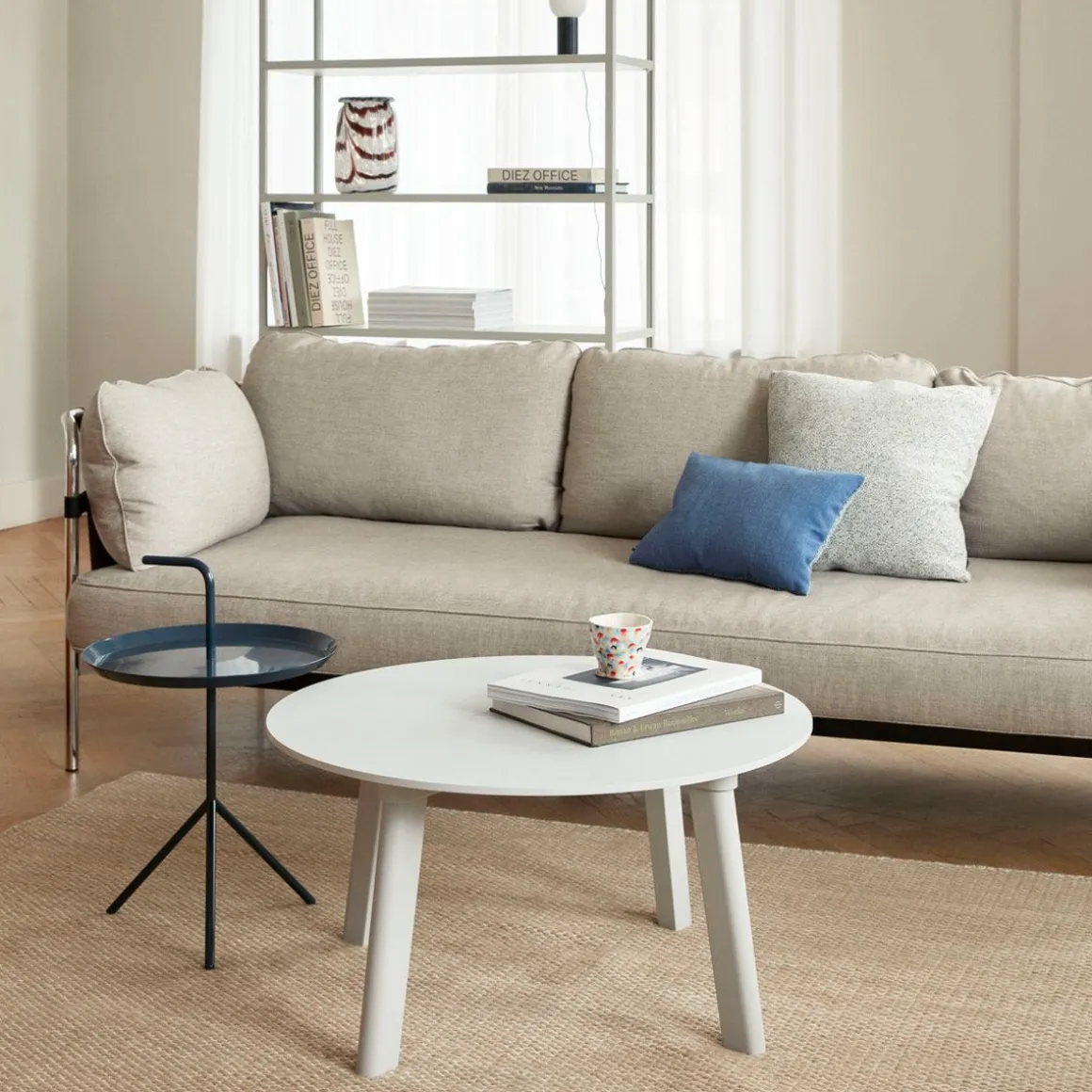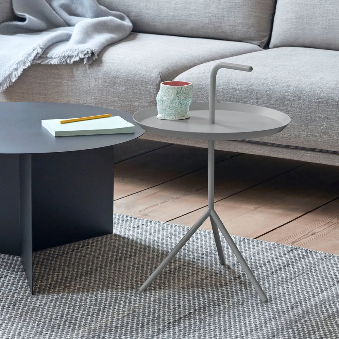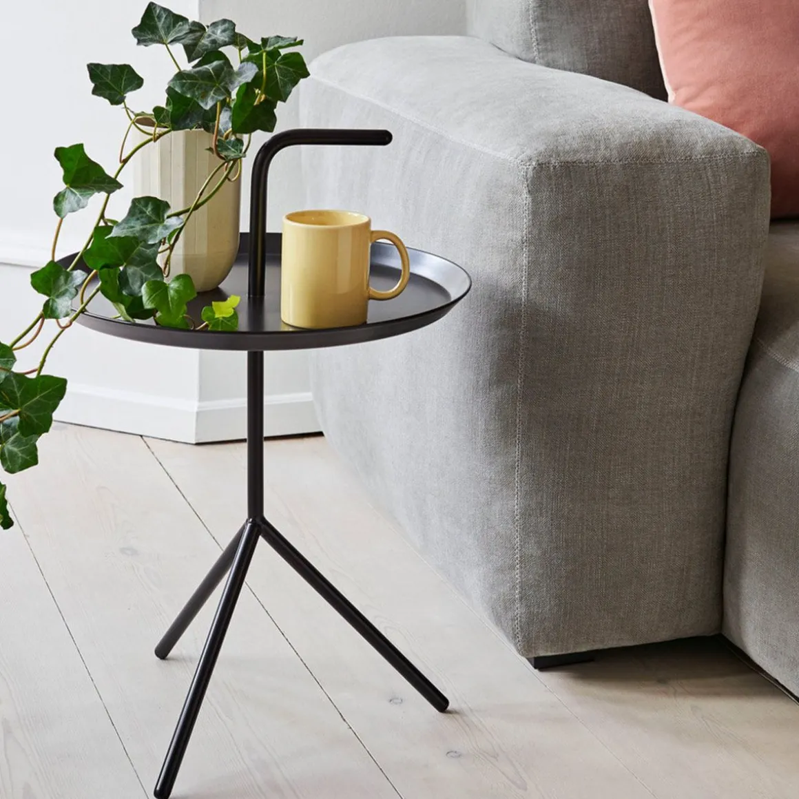 Table d’appoint DLM de Hay. La table d’appoint portable de Thomas Bentzen porte bien son nom ‘Don’t Leave Me’. Abrégé en DLM, il est doté d’une poignée pratique qui permet de transporter la table en métal d’une pièce à l’autre. Bien qu’il ait une structure légère et portable, les trois pieds inclinés offrent une grande stabilité.