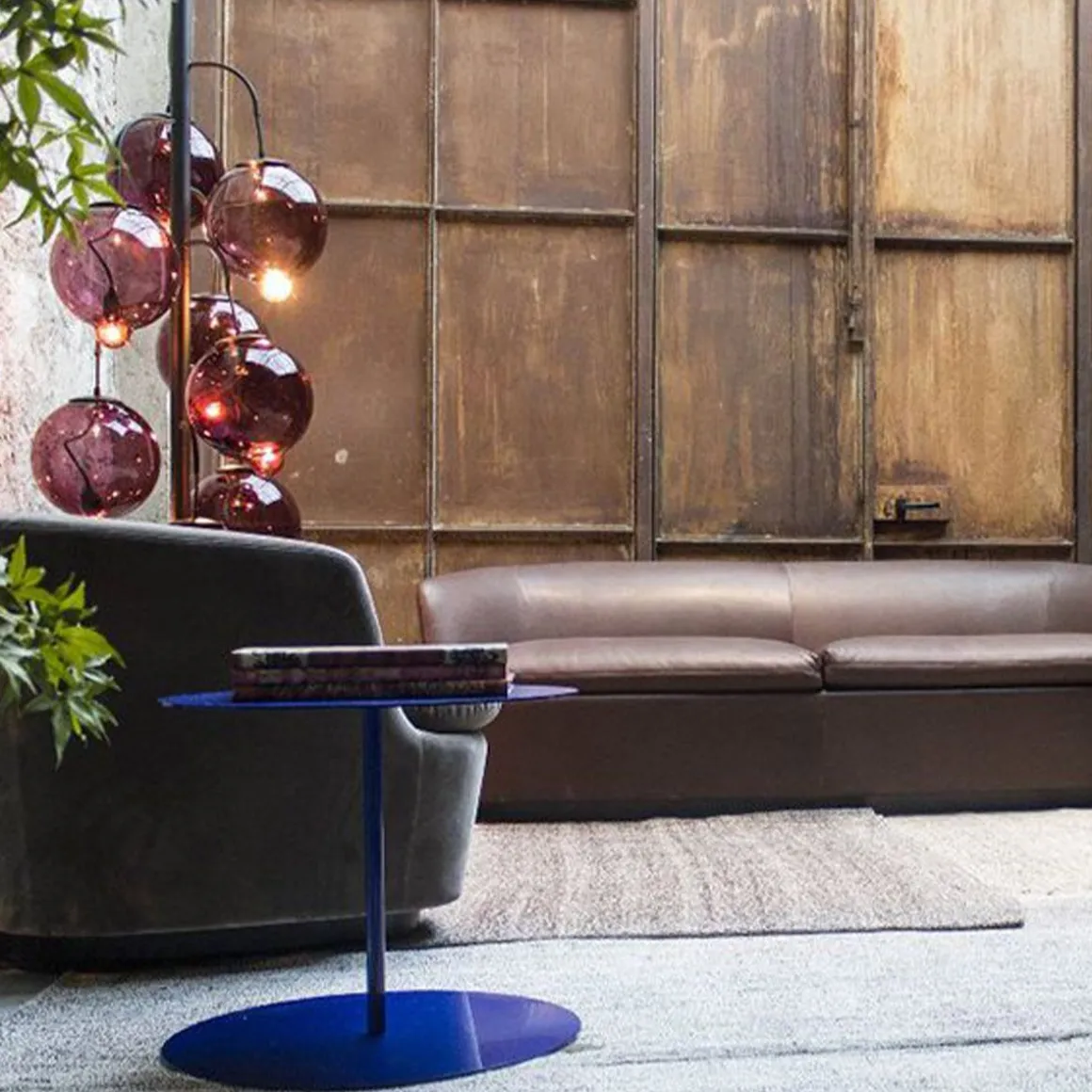 Table de service ronde amovible, disponible en deux dimensions, en plaques métalliques découpées au laser. Ces couleurs classiques rehaussent avec élégance la célèbre table Gong Lux de Giulio Cappellini , un objet précieux et étonnamment moderne malgré les teintes chaudes classiques.
