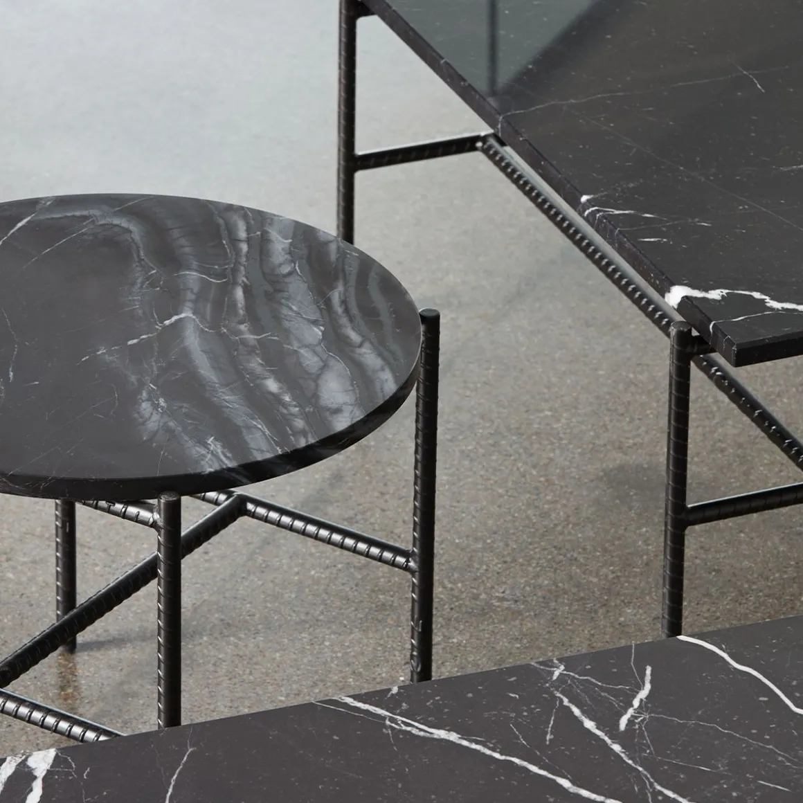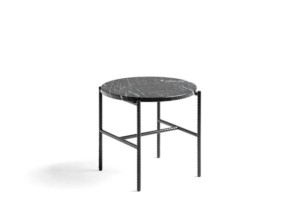 Table d’appoint / Rebar Marbre rond de Hay. La table Rebar Marbre a été réalisée par Sylvain Willenz. Les matériaux choisie sont l’acier et le marbre. Les tables sont disponibles dans trois tailles différentes dans des formes rondes et rectangulaires.