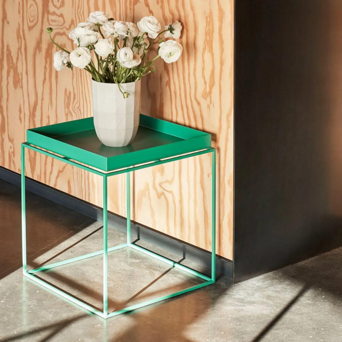 Table d’appoint Tray – Quickship de Hay. La Tray Table en métal est un meuble multifonctionnel qui peut facilement être adapté à vos besoins. Lorsque le plateau est en place, il peut être utilisé comme table de chevet ou table d’appoint, et lorsque le plateau est retiré, il devient un plateau ordinaire qui peut être utilisé pour transporter des objets.