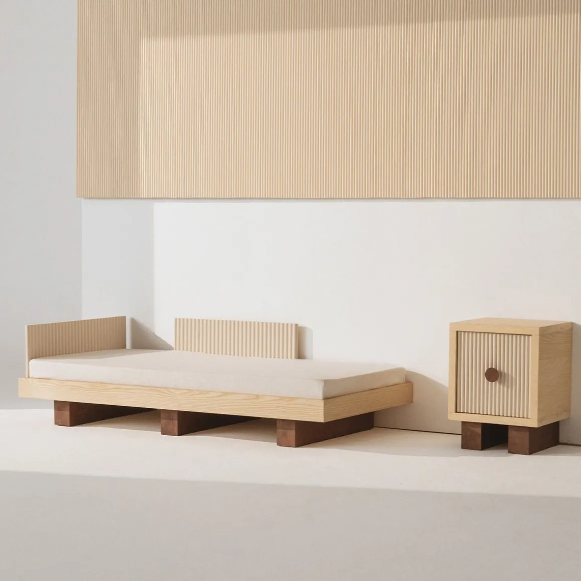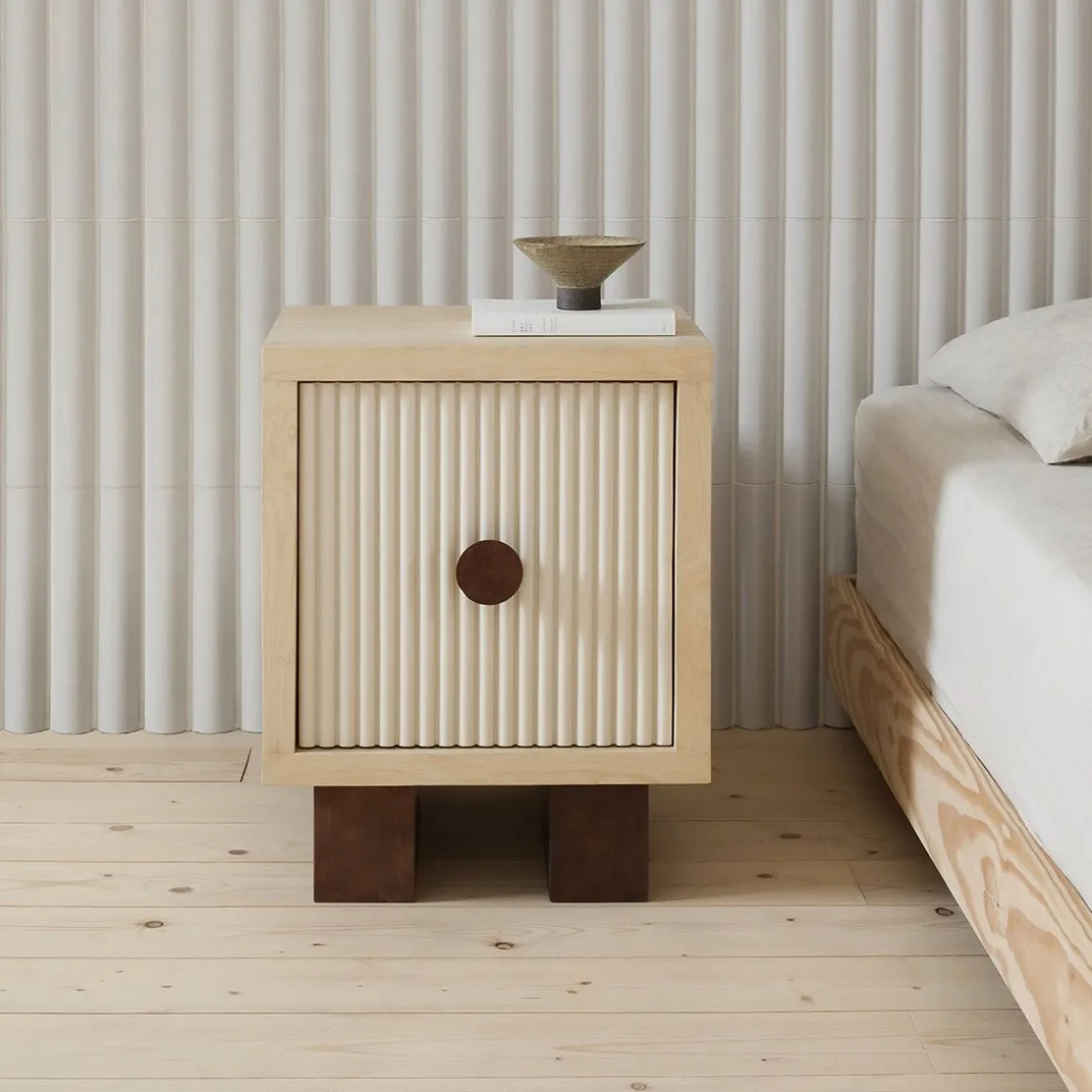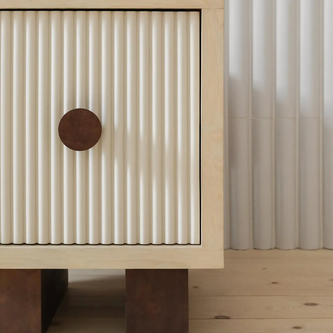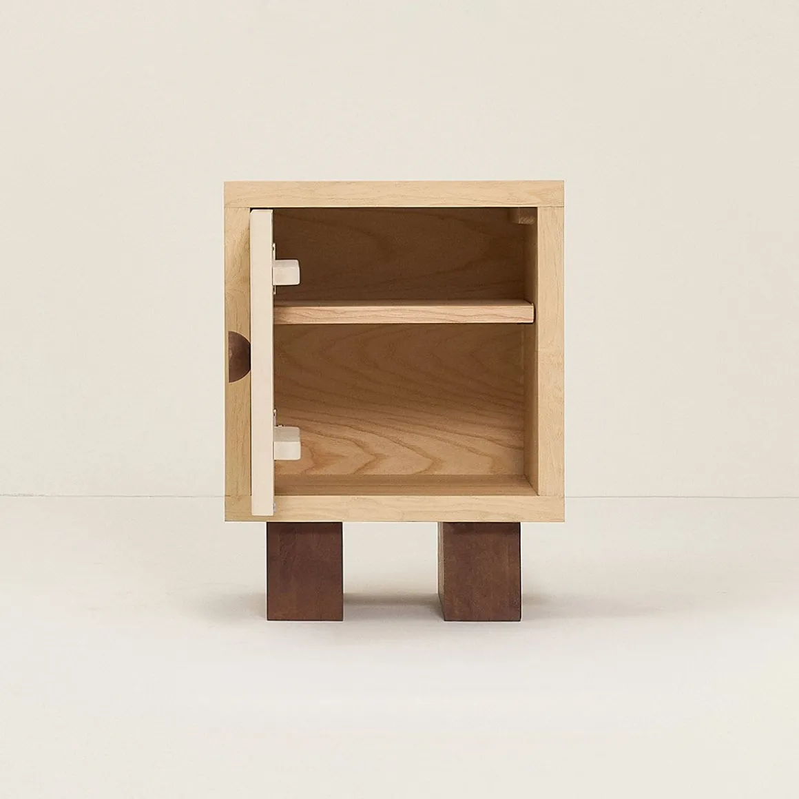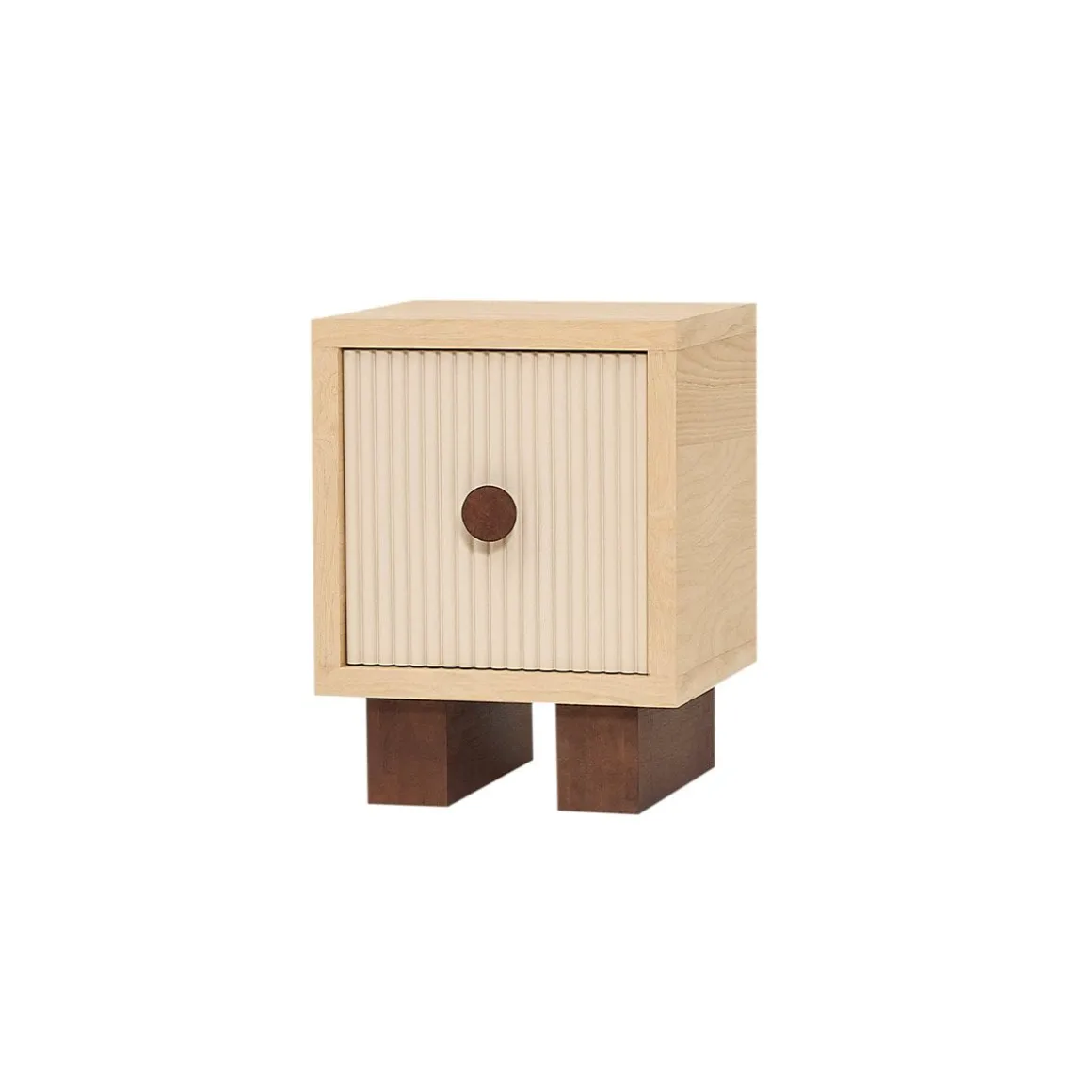 Table de nuit de Nobodinoz par le studio Heju. Cette table de nuit, issue de la collaboration entre Nobodinoz et le Studio Heju, séduit par ses lignes épurées et ses finitions soignées. Une pièce intemporelle qui mélange subtilement le bois clair et le bois teinté foncé, jouant avec la lumière pour créer une atmosphère apaisante. Sa porte dotée de fins godrons texturés n’est pas seulement un geste esthétique, mais aussi une expérience ludique pour les enfants, qui prennent plaisir à explorer les reliefs du bout des doigts. Les pieds de la table de nuit, inspirés des geta – les sandales traditionnelles en bois -, nous transportent au Japon. Sa poignée contrastée et arrondie lui confère un air ludique et sécurisant : elle est facile à attraper pour les petites mains d’enfant sans perdre son aspect épuré. Cette table de nuit se marie parfaitement avec le lit de la même collection. On l’adore également dans une chambre adulte ou comme petite table d’appoint près d’un sofa.