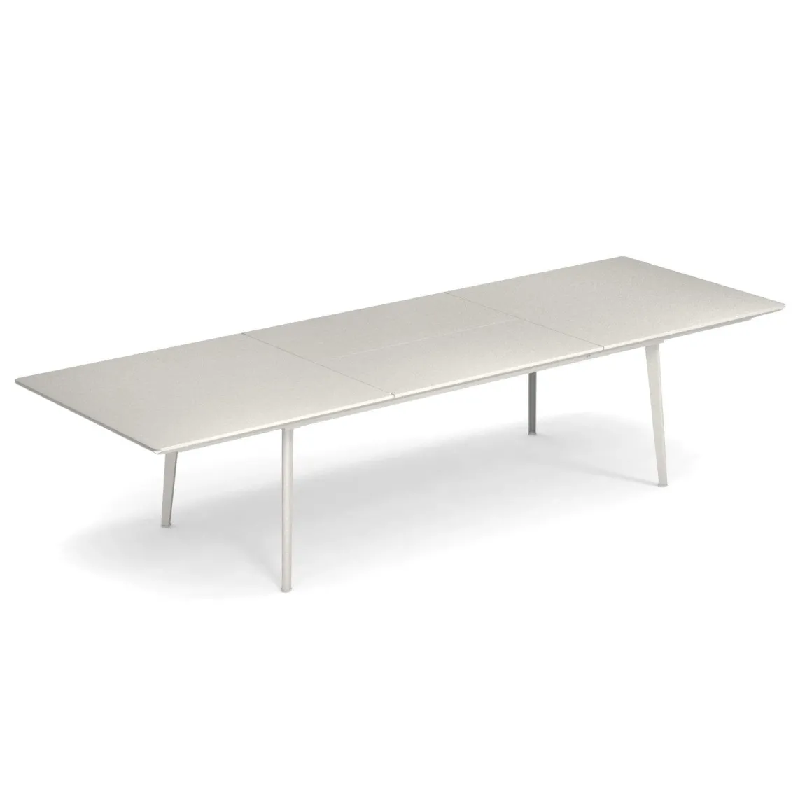 La collection Plus4 comprend deux tables extensibles, mesurant respectivement 160+110×90 cm et 220+110×90 cm, les nouvelles tables Balcony et Imperial Plus4. Le plateau est en acier plié à la presse, avec des finitions soignées assurant un meilleur effet esthétique. Les glissières permettant d’allonger le plateau sont conçues par EMU. Le mécanisme en « papillon » de la rallonge interne assure une ouverture extrêmement aisée. Par rapport à une table extensible traditionnelle, la rallonge de 110 cm permet d’ajouter 4 couverts au lieu de 2, ce qui augmente les possibilités d’utilisation de ce produit. En outre, l’extension de la table est conçue de manière à ce que toutes les personnes puissent s’asseoir sans être gênées par les pieds. Le pied de toutes les tables Plus 4 sont réalisés en tôle profilée et se termine en forme de « U » avec un patin qui copie sa forme.
