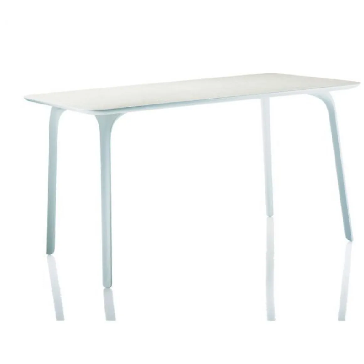First est une table rectangle dessinée par Stefano Giovannoni pour Magis. Ces lignes soignées et élégantes amènent une sobriété attrayante, cette table saura sublimer tout intérieur ou jardin.
