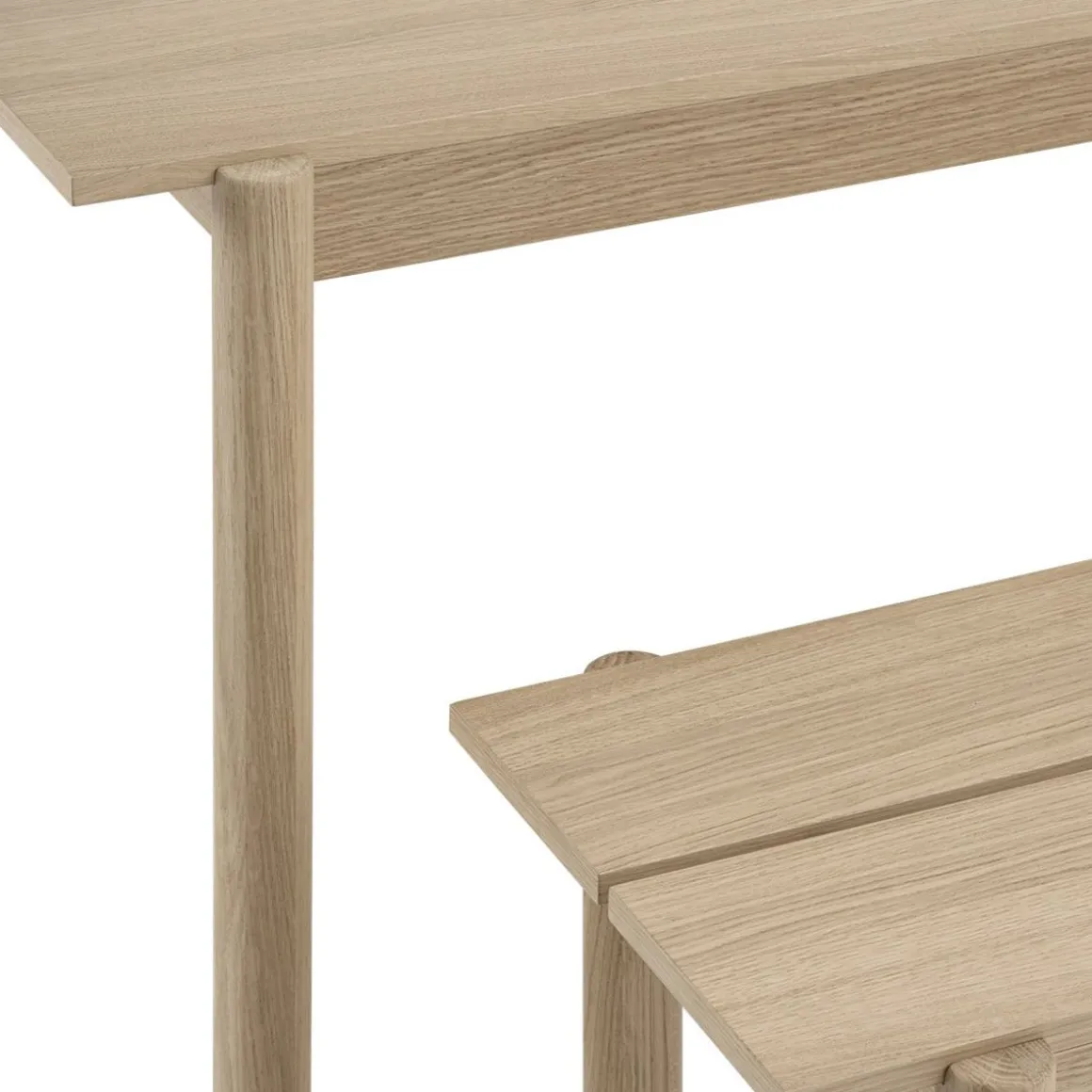 Matériaux : plateau de table en chêne laqué avec pieds en chêne