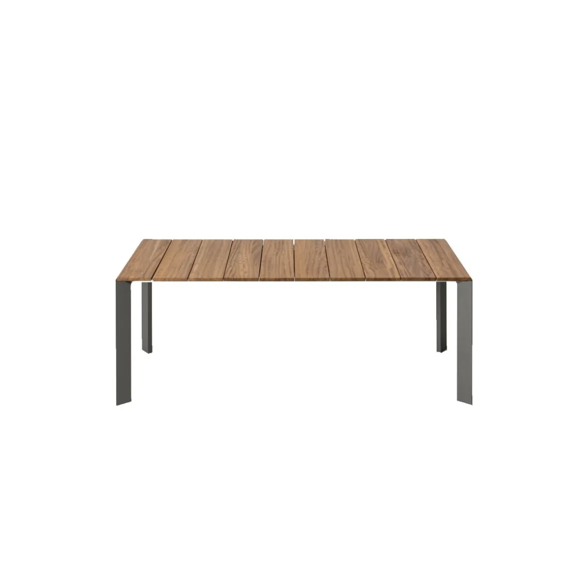 Une table à rallonge pour vos repas dehors qui est réalisée en bois et aluminium laqué. Un design épurée et polyvalent qui vous conviendra. La table est disponible en plusieurs tailles pour trouver votre bonheur. Le plateau est fait avec des lattes de 20 cm de large et 2 cm d’épaisseur. La rallonge du plateau est de la même couleur que les pieds. Ce plateau est en teck provenant des forêts certifiées FSC en respectant l’environnement.