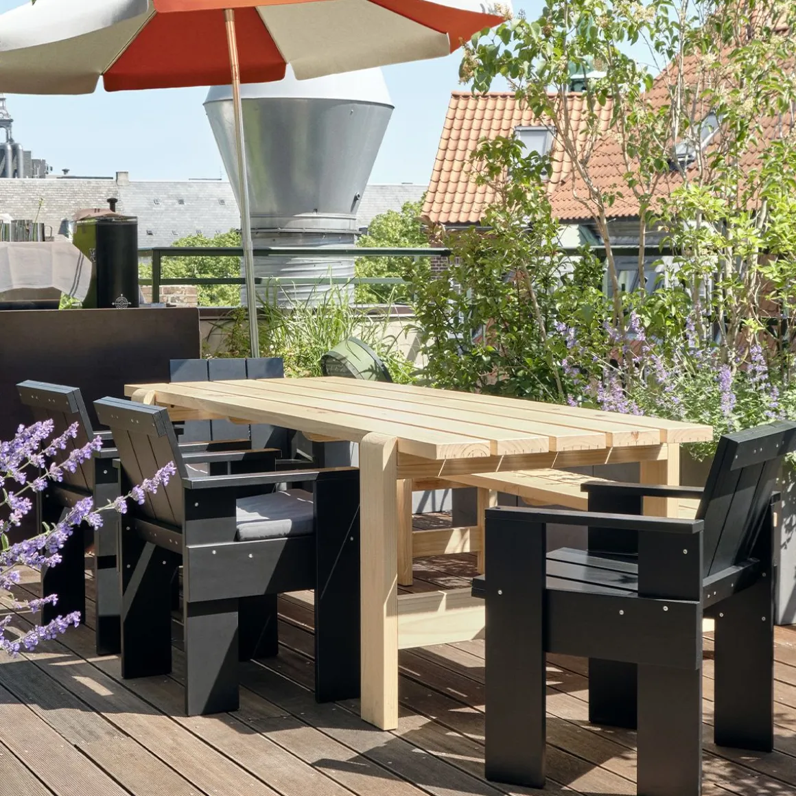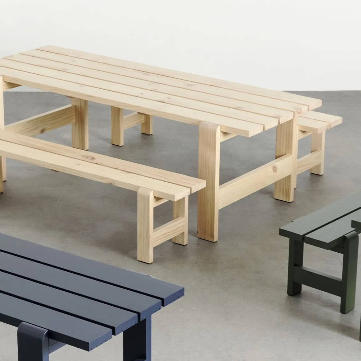 Table rectangulaire Weekday de Hay. La table Weekday de Hannes & Fritz a été inspirée par l’idée de rassembler les gens et d’expériences culinaires communes. Combinant une présence solide et robuste avec des joints légèrement arrondis, la table Weekday transmet un sentiment de chaleur et de familiarité qui invite aux repas partagés et à une atmosphère sociale. Présentant la même construction simple que la table de pique-nique classique, elle est fabriquée en planches de pin solides et durables qui se patineront magnifiquement et dureront de nombreuses années à venir. Le caractère fort mais universellement attrayant de la table Weekday, combiné à son traitement de surface à base d’eau résistant aux intempéries, la rend adaptée à une utilisation en extérieur dans un large éventail d’environnements, des cafés et parcs publics aux jardins privés ou partagés.