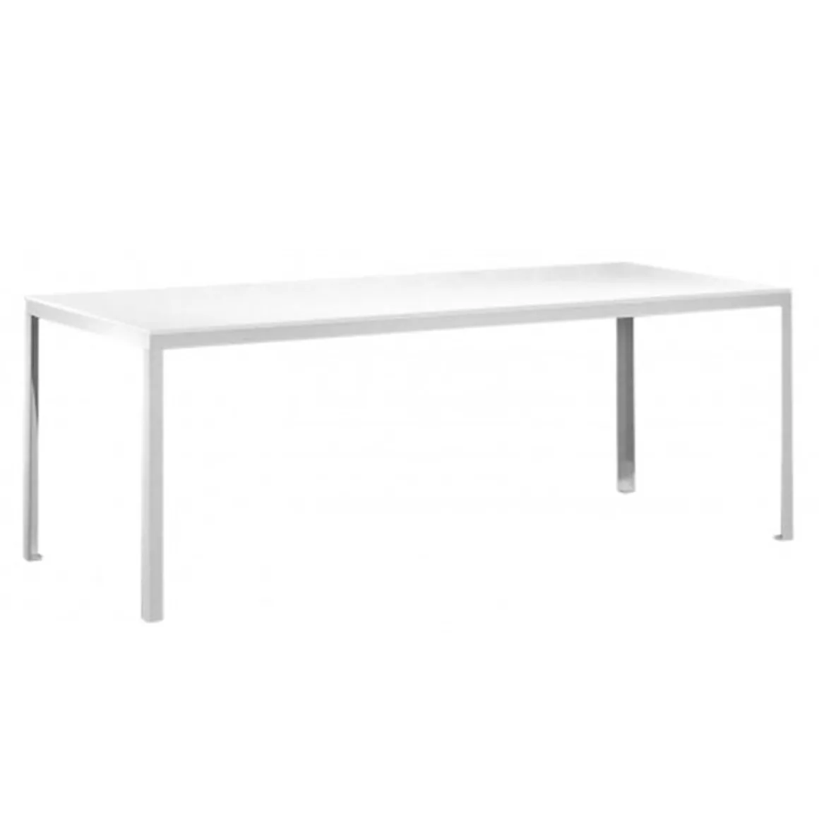 TAVOLO est une table moderne en acier dessinée par Maurizio Peregalli. Son piètement extrêmement fin lui confère une certaine légereté. Structure démontable à cornières en acier et plateau en tôle d’acier zingué. Peinture époxy pour extérieur, couleur rouille ou blanc avec une finition gaufrée ou couleur gris canon de fusil.