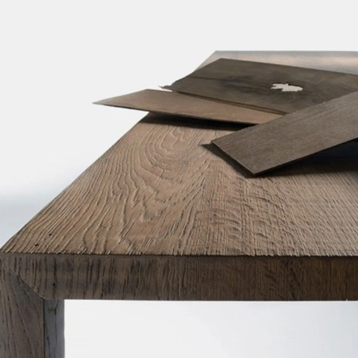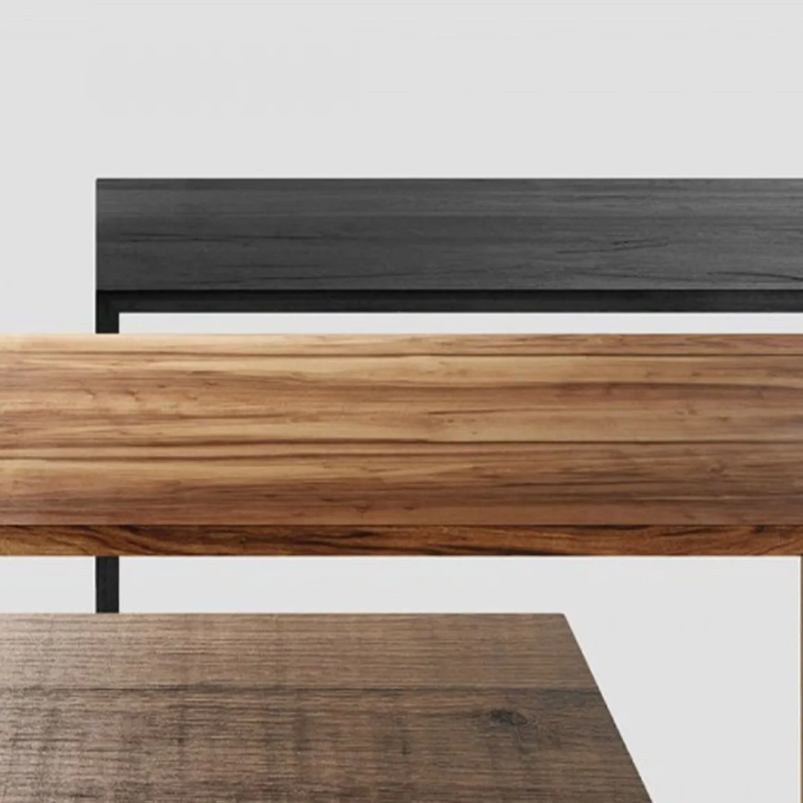 Le CHÊNE NATUREL met en valeur les veines du bois et dévoile le temps qui passe, rehaussant sa beauté. La surface naturelle et ridée n’est pas seulement une expérience visuelle, mais aussi tactile. Chaque table est différente d’une autre, donc chaque produit prend une personnalité unique. La finition de ce matériau tendu apporte de la chaleur dans le salon et s’intègre dans tous les contextes et styles d’ameublement. Inspiré de la technique japonaise, Tense CARBON part d’une base en chêne. En utilisant des acides naturels, on obtient un effet «brûlé» sur la surface. Ainsi, le bois semble noir avec des nuances intenses et entièrement naturelles, uniques et non reproductibles.