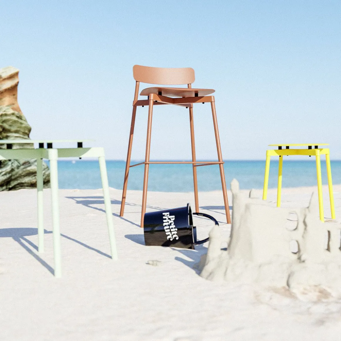 Tabouret de bar Fromme de Petite Friture par Tom Chung. La famille Fromme s’agrandit ! Un an après l’édition des chaises Fromme en 2020, le jeune designer canadien Tom Chung et Petite Friture s’associent de nouveau pour l’édition de cette extension de gamme dont toutes les assises sont empilables. Le tabouret de bar Fromme est un assemblage de pièces moulées sous pression et profilées, et de tubes extrudés imaginés spécialement pour la fabrication de Fromme par son designer, Tom Chung. Cette méthode de fabrication en fait un tabouret de bar métal à la fois solide et léger. Les amortisseurs placés sous l’assise rendent ce tabouret de bar moderne original et confortable. Il peut parfaitement convenir à un usage intérieur comme extérieur.