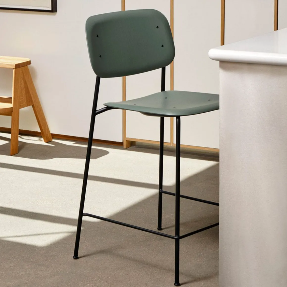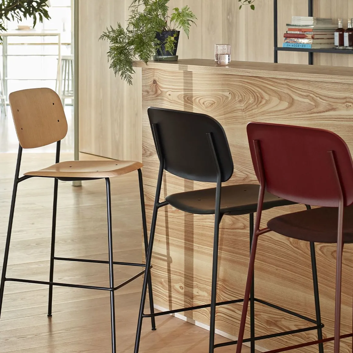 Tabouret de bar soft edge 90 de Hay. Doté d’une assise et d’un dossier en bois dans une gamme de finitions différentes, le tabouret de bar soft edge 90 a de longs pieds en acier qui améliorent l’esthétique minimaliste et créent une sensation de légèreté, tandis que le dossier bas et de soutien améliore la stabilité et le confort du tabouret de bar. Sa force et sa fonctionnalité garantissent des années d’utilisation quotidienne dans un large éventail d’environnements publics et privés – des espaces d’entreprise et des cafés aux environnements domestiques. Disponible en deux hauteurs différentes.