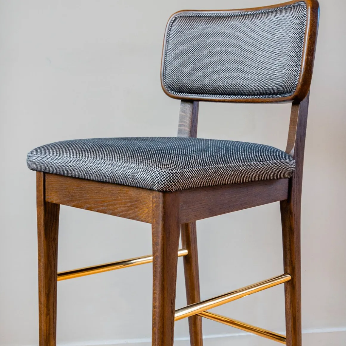Tabouret haut tapissier de Red Edition. Le tabouret haut s’inscrit dans notre collection d’assises en bois. Ce tabouret vous permet de vous asseoir tout en prenant de la hauteur. Disponible en deux versions : avec un dossier en cannage pour une touche de charme classique, ou avec un dossier tapissier pour un confort supplémentaire et une esthétique élégante.