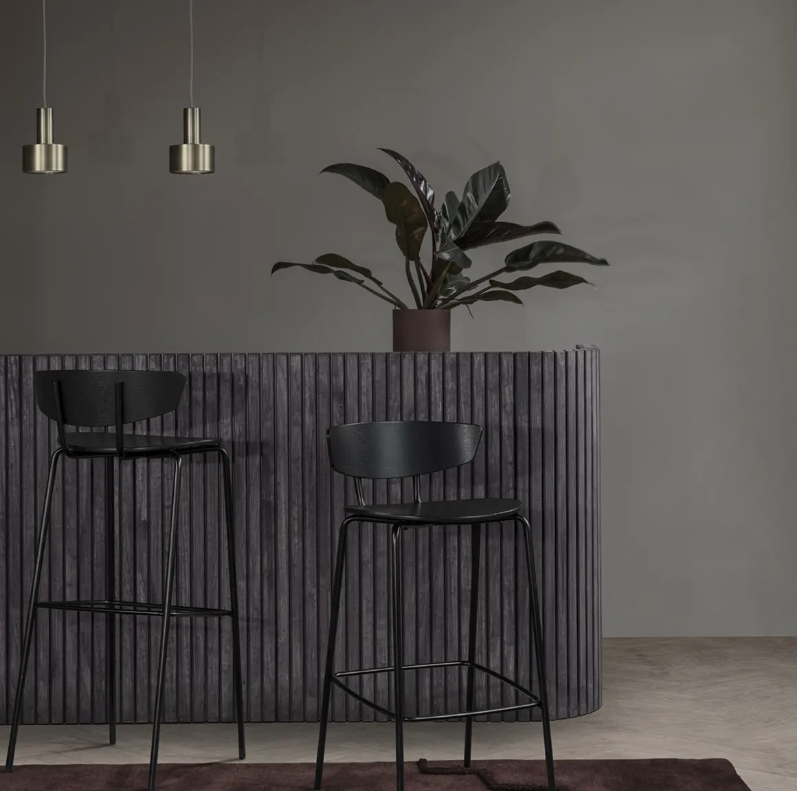La famille Herman est toujours en croissance, et la chaise Herman est maintenant disponible en tabouret de bar. Les surfaces noir foncé sont faites de placage de chêne et soutenues par la conception légère de métal enduit de poudre. La chaise Herman vous accueillera avec son dossier large en s’assurant que vous resterez à l’aise pendant des heures et des heures. Les chaises sont facilement empilables, et comme un détail joliment ajouté les angles des dossiers en bois sont conçus de sorte que les chaises puissent être accrochées sur la table. De cette façon, vous pouvez facilement nettoyer sous la table et les chaises ne prennent pas de place lorsque vous n’en avez pas besoin. Le danois Herman Studio a conçu la chaise Herman, et il est produit par ferm LIVING.
