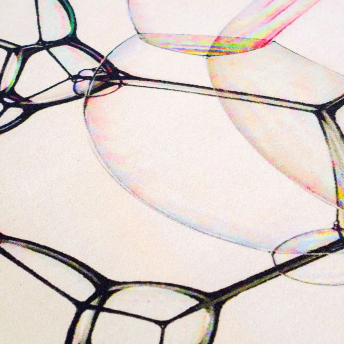 Une seule bulle de savon possède une forme circulaire parfaite, représentée dans le tapis à bulles. De beaux motifs naturels sont créés en raison de leur capacité à adopter une forme qui rend la somme de leurs surfaces aussi petite que possible. Après un examen plus approfondi, ils sont remplis d’arcs-en-ciel tourbillonnants de couleur – le chaos à son meilleur. Ces motifs de collision sont causés par la lumière qui rebondit dans et hors des murs de la bulle et créent une gamme de couleurs des plus magnifiques. Conçu par Sjoerd Vroonland.