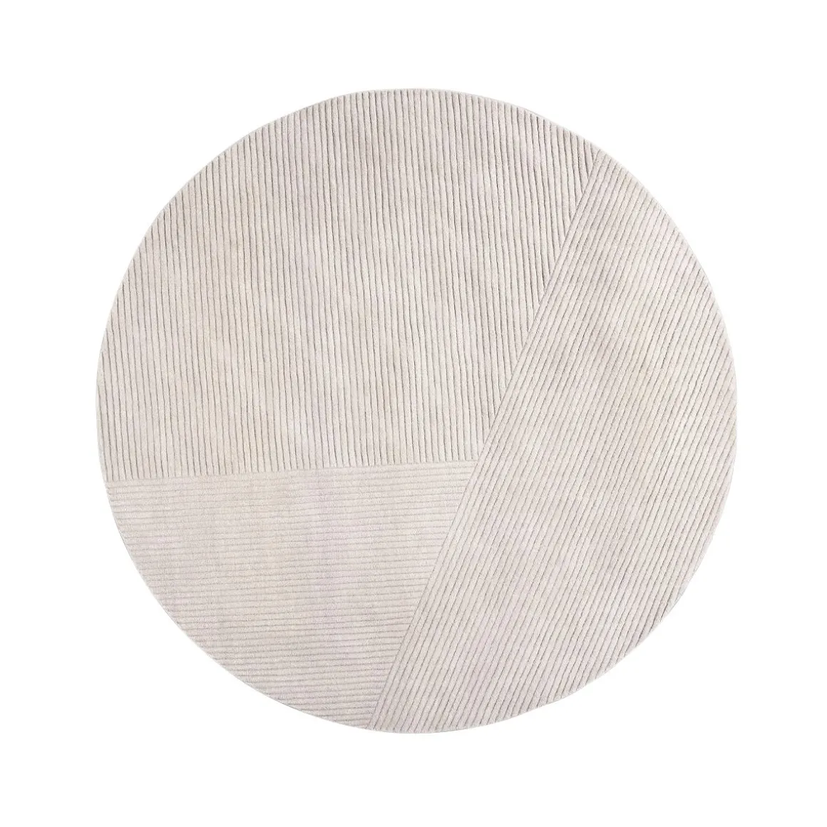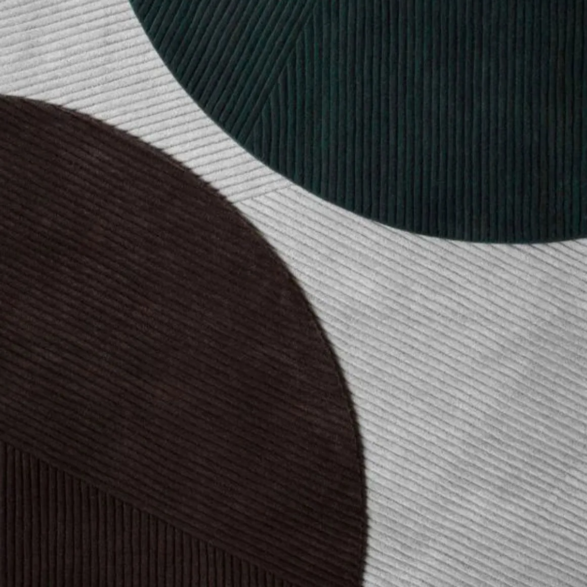 Chaque tapis de la série Row a été inspiré par une vue d’ensemble du paysage. Leurs surfaces texturées sont façonnées par des lignes parallèles qui ressemblent aux sillons d’un champ labouré. Les sections de rangées sont régulières, mais se rencontrent à des angles différents, imitant la façon dont les frontières entre les champs se déplacent de la récolte à la récolte. Fabriqué à partir de laine de Nouvelle-Zélande, chaque tapis est tissé à la main individuellement. Les artisans coupent les fibres à la main pour former les longues rangées régulières qui créent les lignes contrastées des tapis. Bien que les tapis puissent sembler monochromes, un examen plus attentif révèle la variété de tons dans les fils individuels qui composent les couleurs générales. Les tapis sont disponibles en formes rondes et rectangulaires, chaque version fournissant les couleurs, les textures et les lignes parallèles qui rendent la série Row unique.