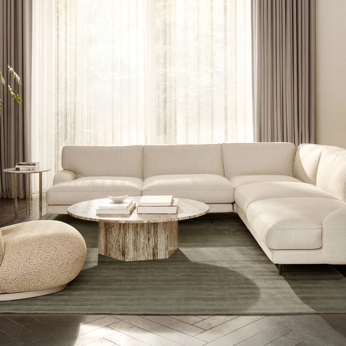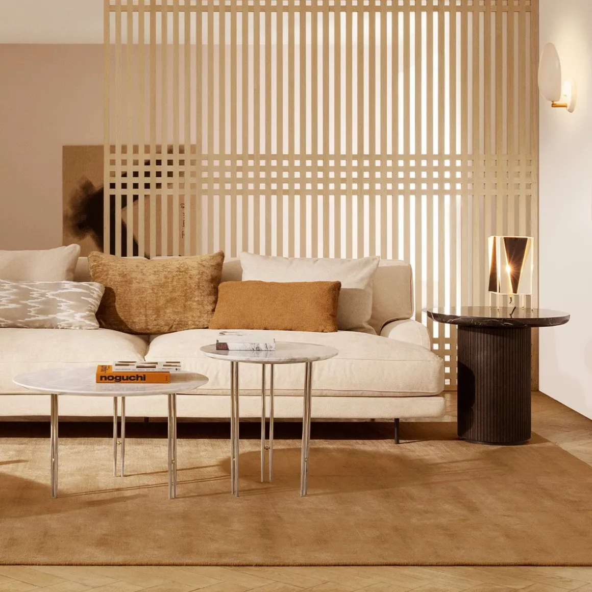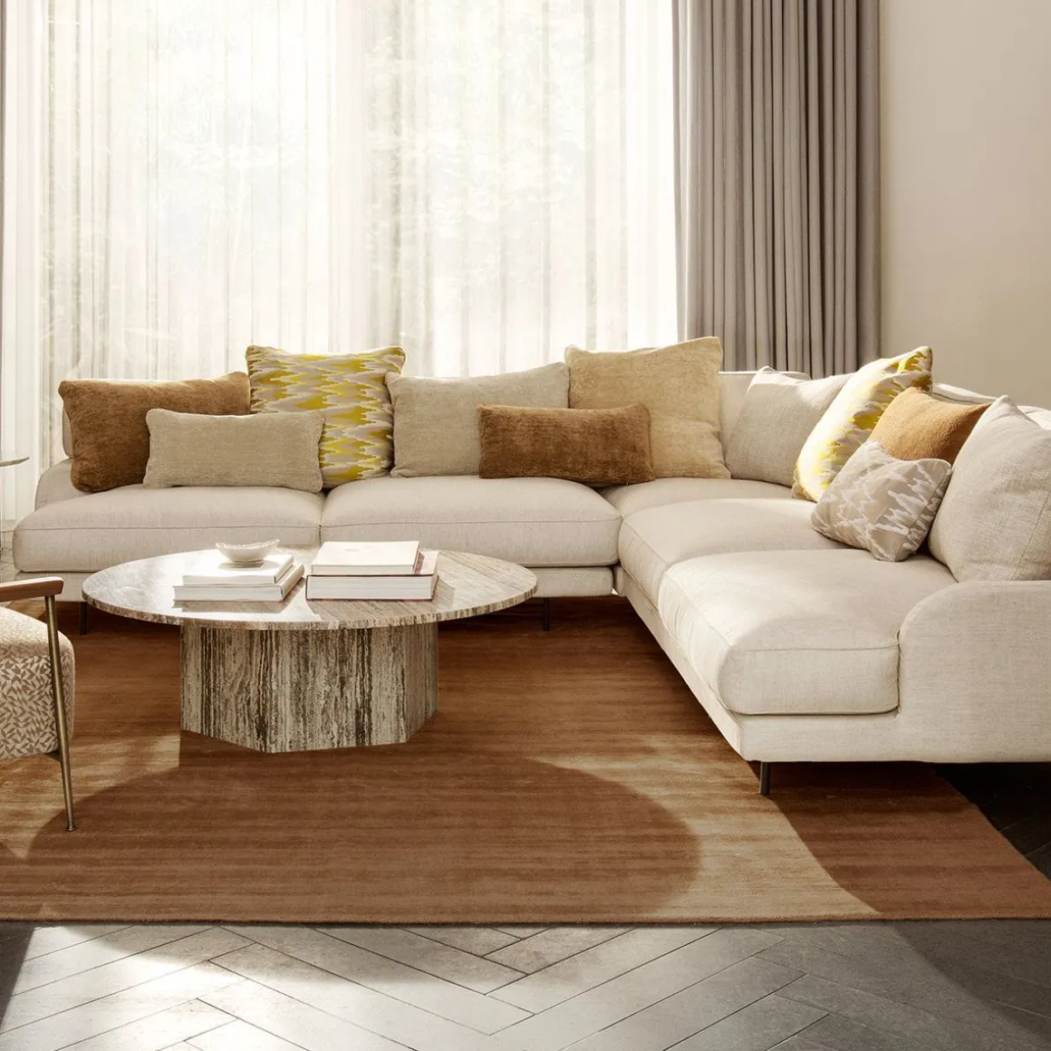 Les tapis GUBI X GOLRAN sont tissés à la main en Inde par des artisans qualifiés dont la sensibilité artistique conduit à l’introduction de variations originales sur les techniques traditionnelles. La combinaison de laine de Nouvelle-Zélande et de viscose confère aux tapis une profondeur et un jeu de couleurs, une finition soyeuse douce et luxueuse, ainsi que résistance et durabilité. Le tissage serré des tapis les rend faciles à nettoyer et garantit que le velours reste droit même en cas d’utilisation intensive. Disponible en trois tailles rectangulaires.