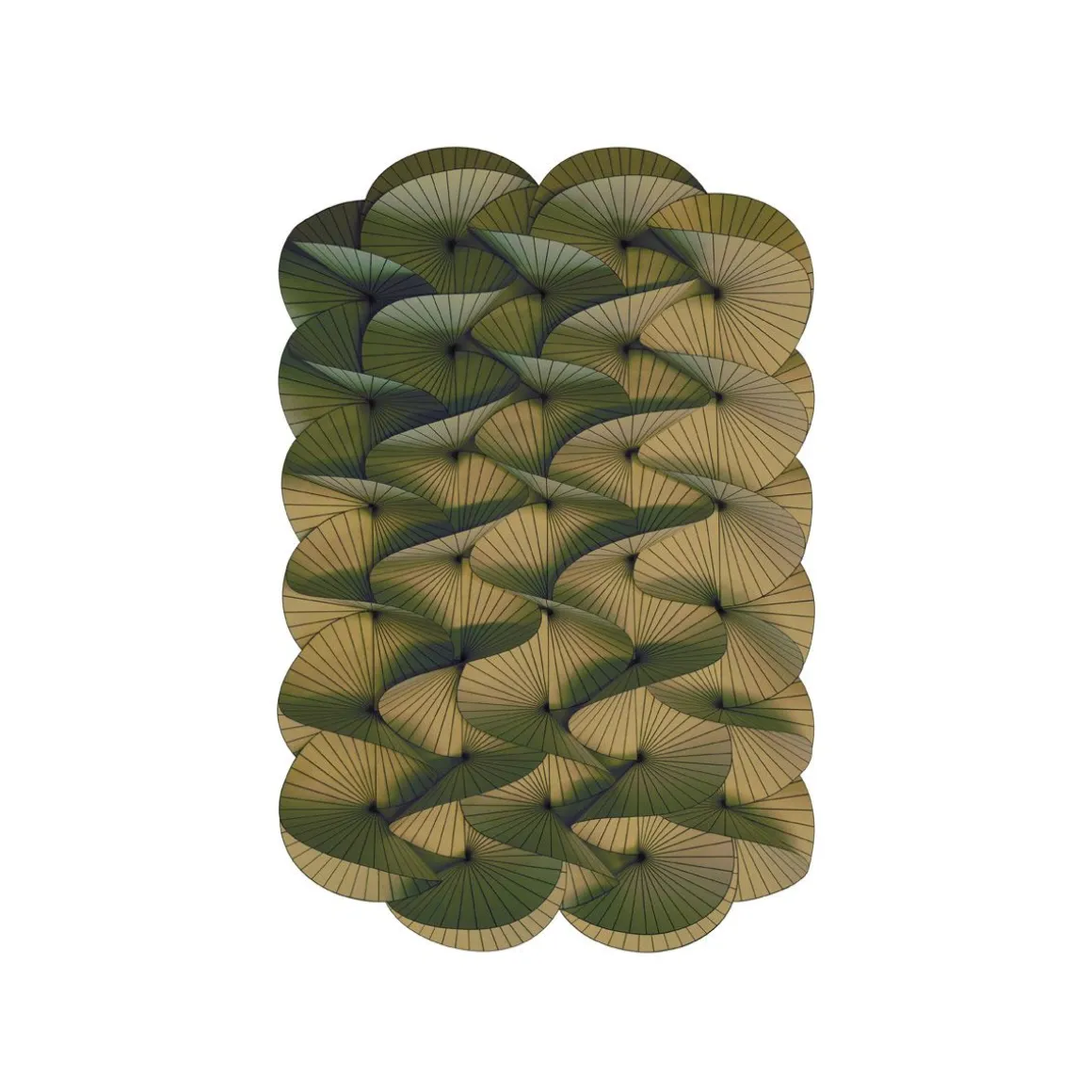 Le tapis serpentine est un jeu avec du papier découpé crée une forme organique et torsadée – un tourbillon comme une serpentine. Un dégradé de couleurs apparaît dans la lumière et les ombres donnant l’illusion d’un motif tridimensionnel sur le tapis.
