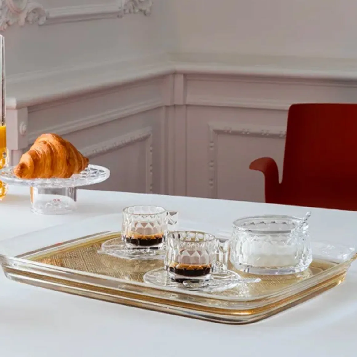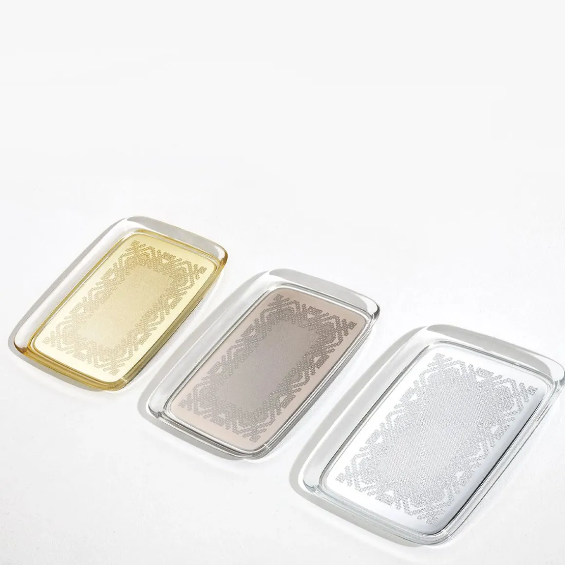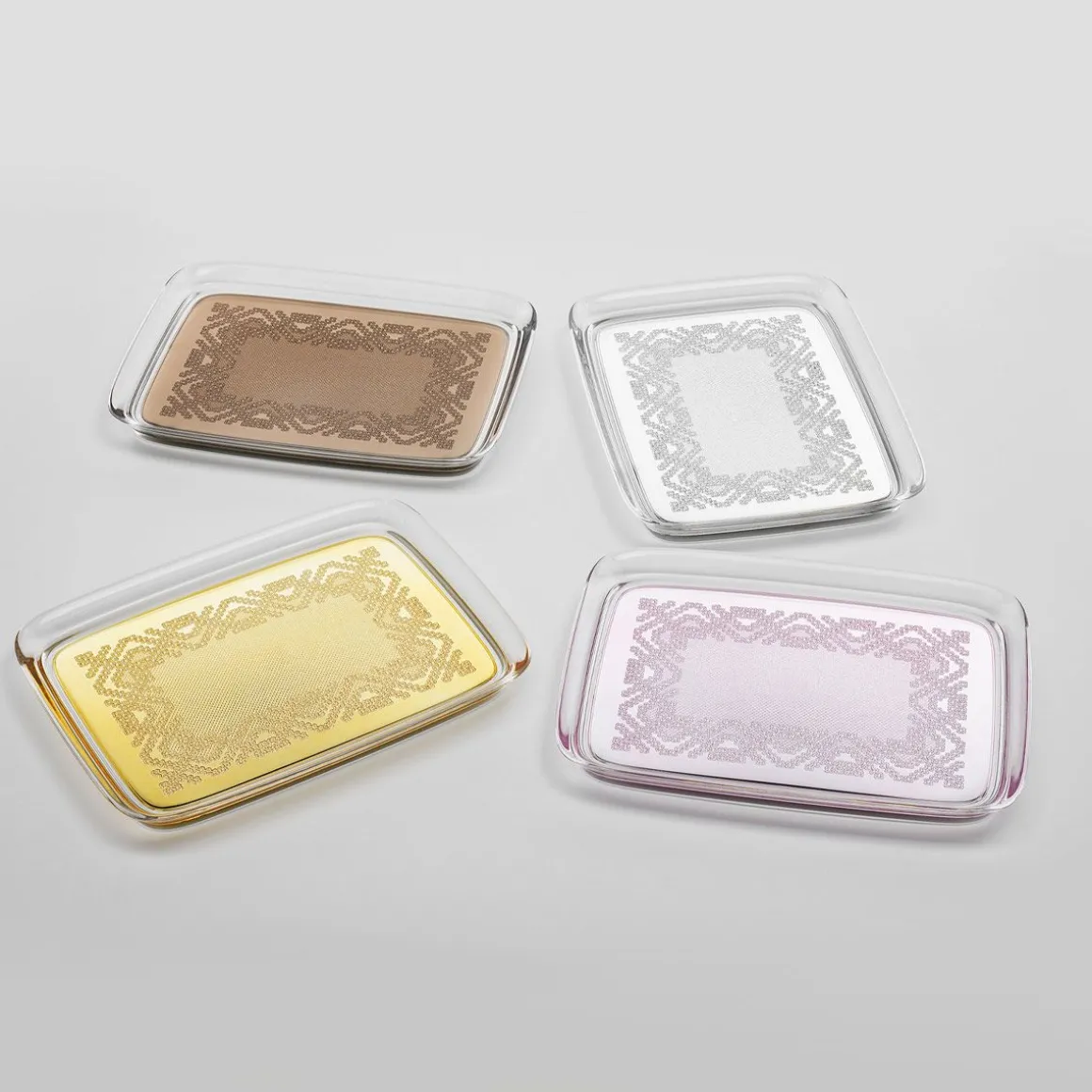 Une broderie précieuse, rappelant le passé mais devenant un objet de design discret et familier, comme le tea time en famille. TEATIME est le nouveau plateau de Philippe Starck, qui joue avec les références de l’ajourage au crochet appliquées au nouveau matériau durable de haute technologie. Disponible en or, bronze, chrome et rose.