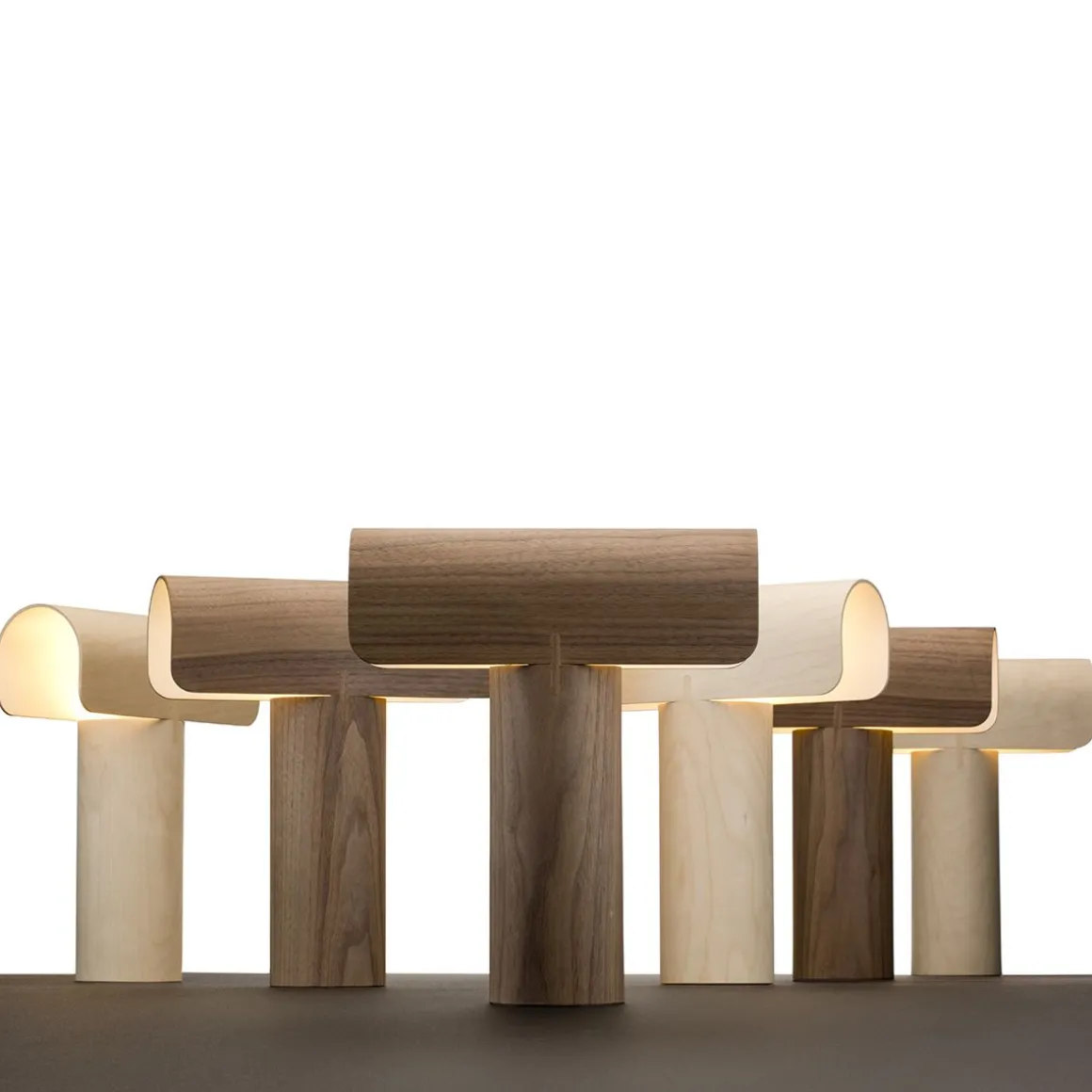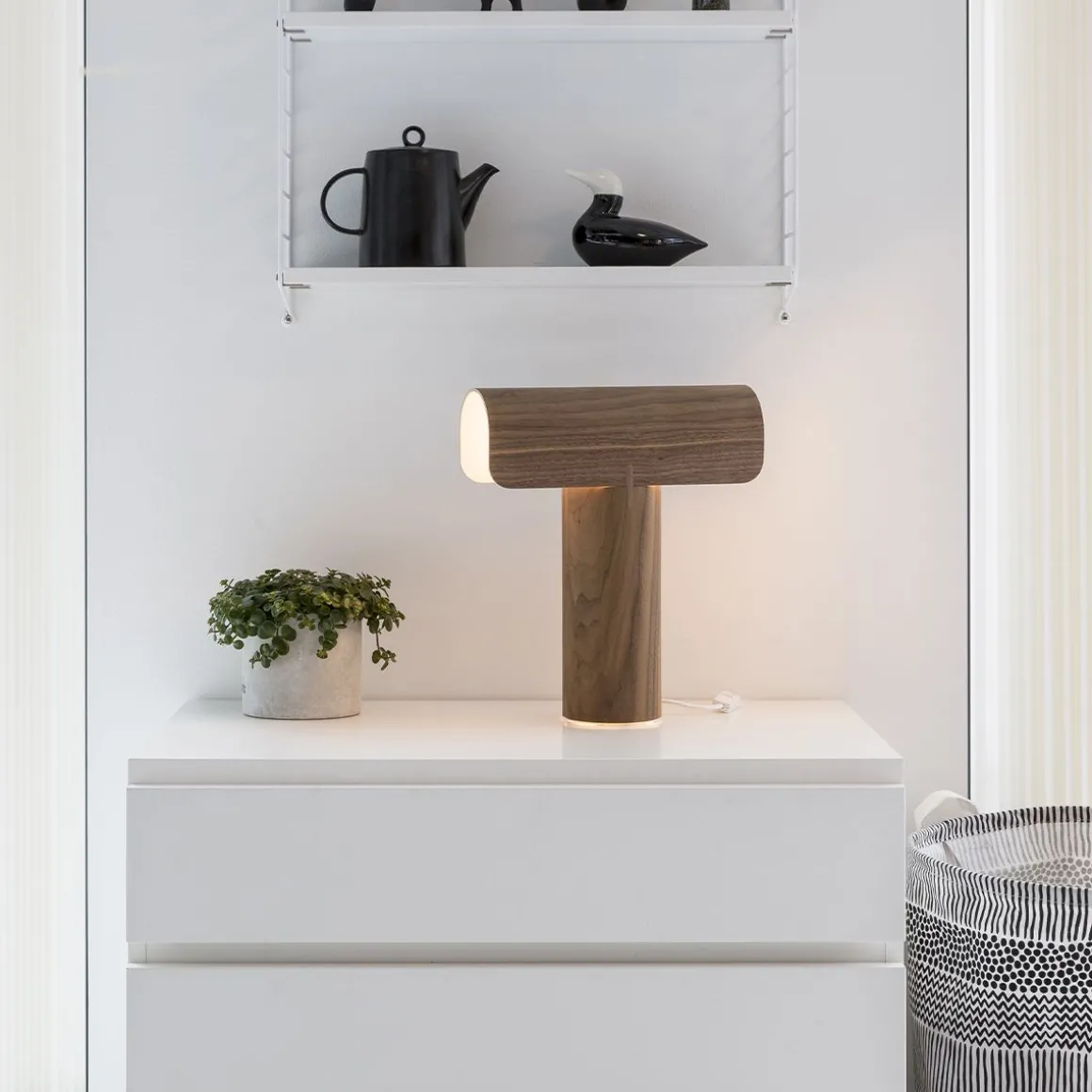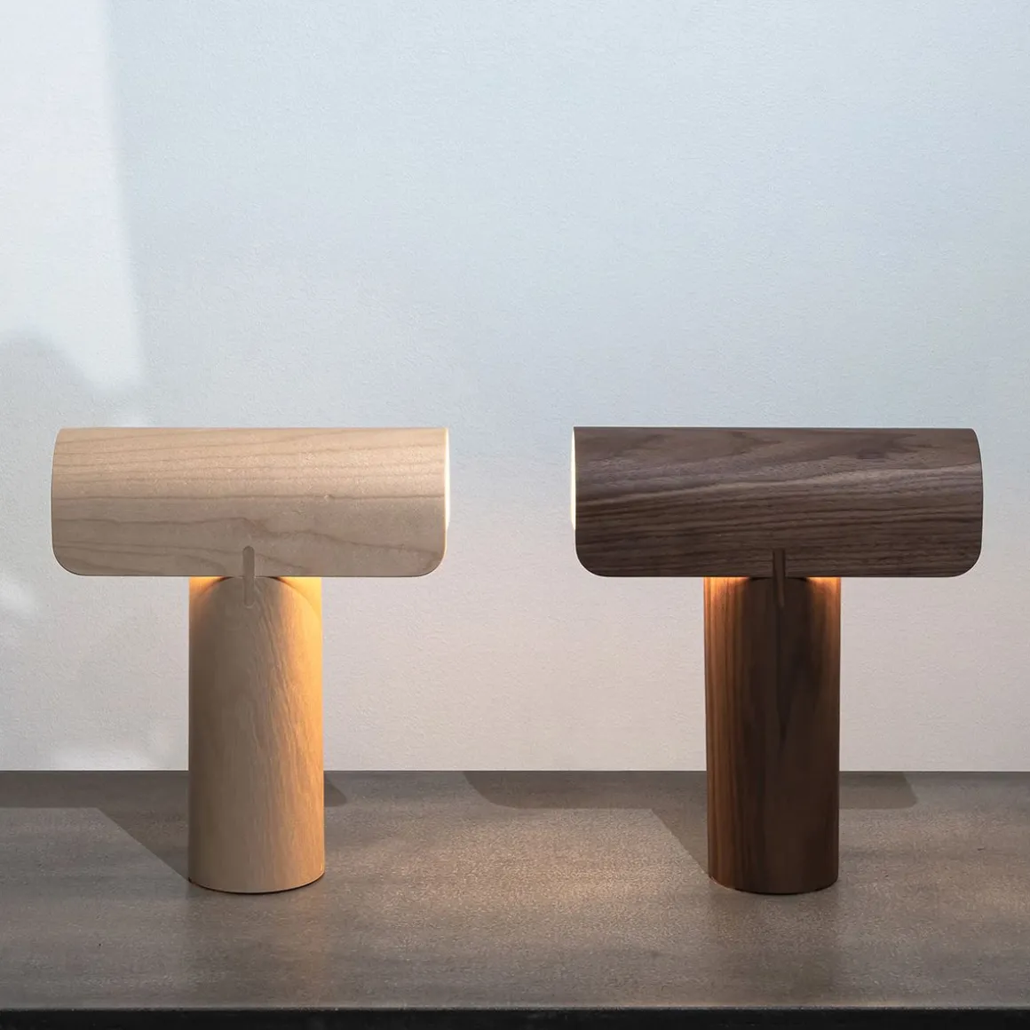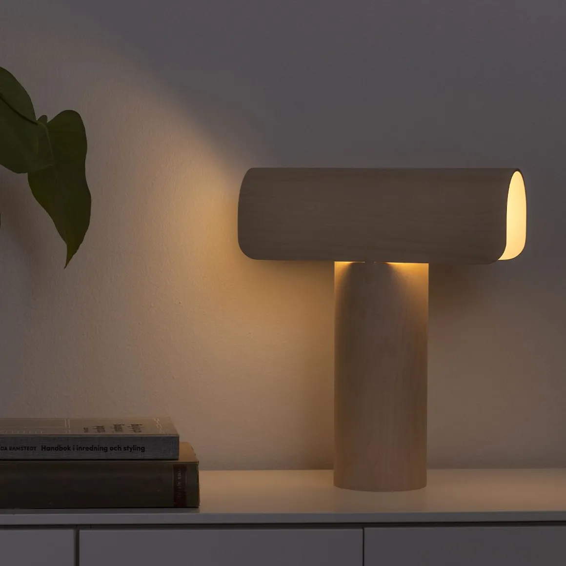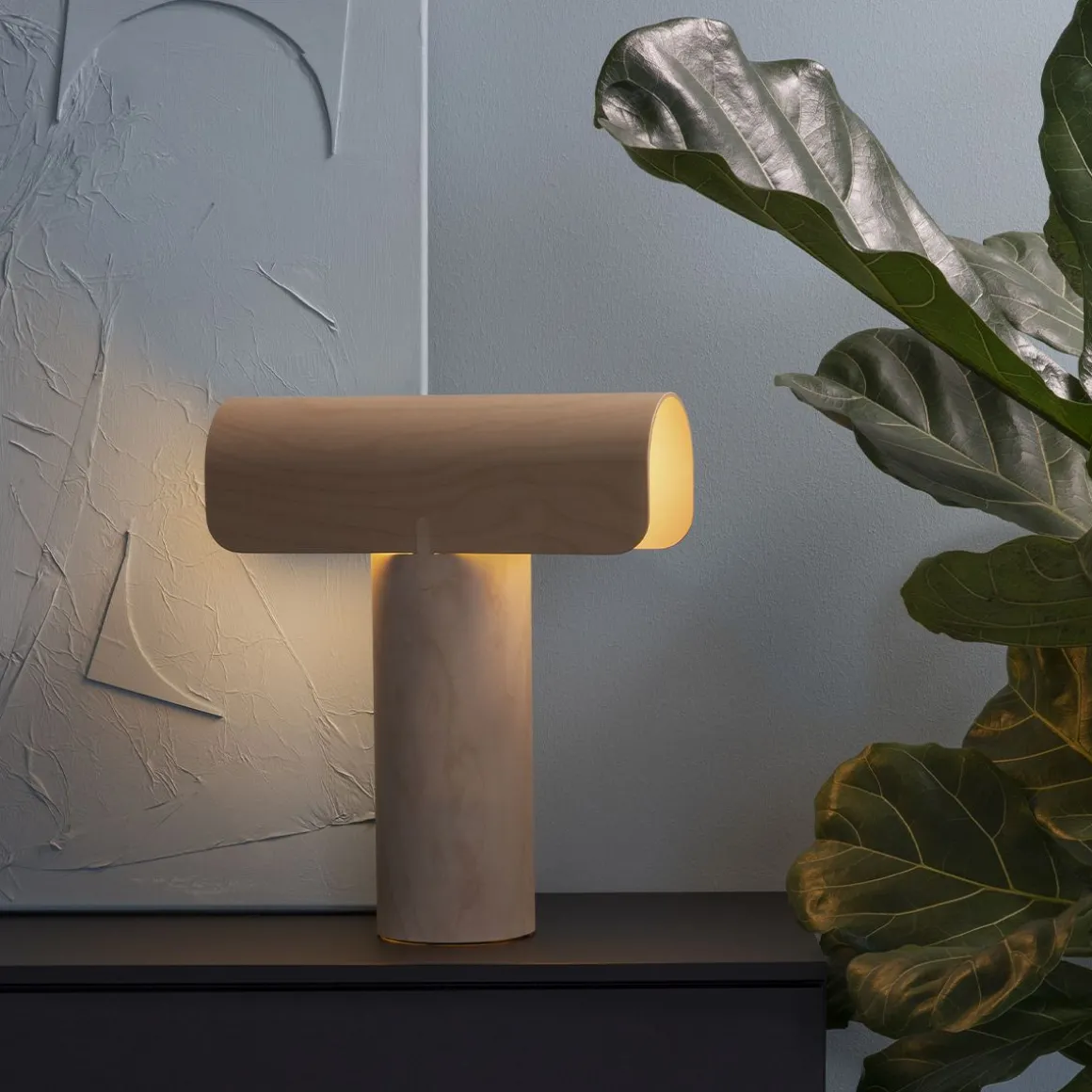 Une lampe de table audacieuse au ton sculptural. Notez les détails dans la conception des joints.