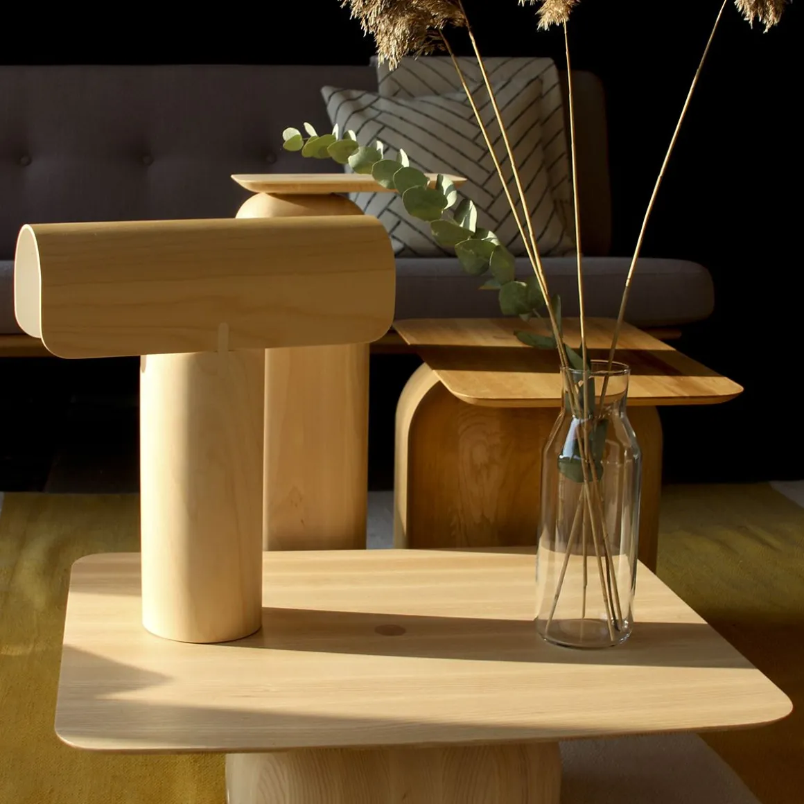 Matériaux : bouleau pressé, support intérieur en acier peint par poudrage