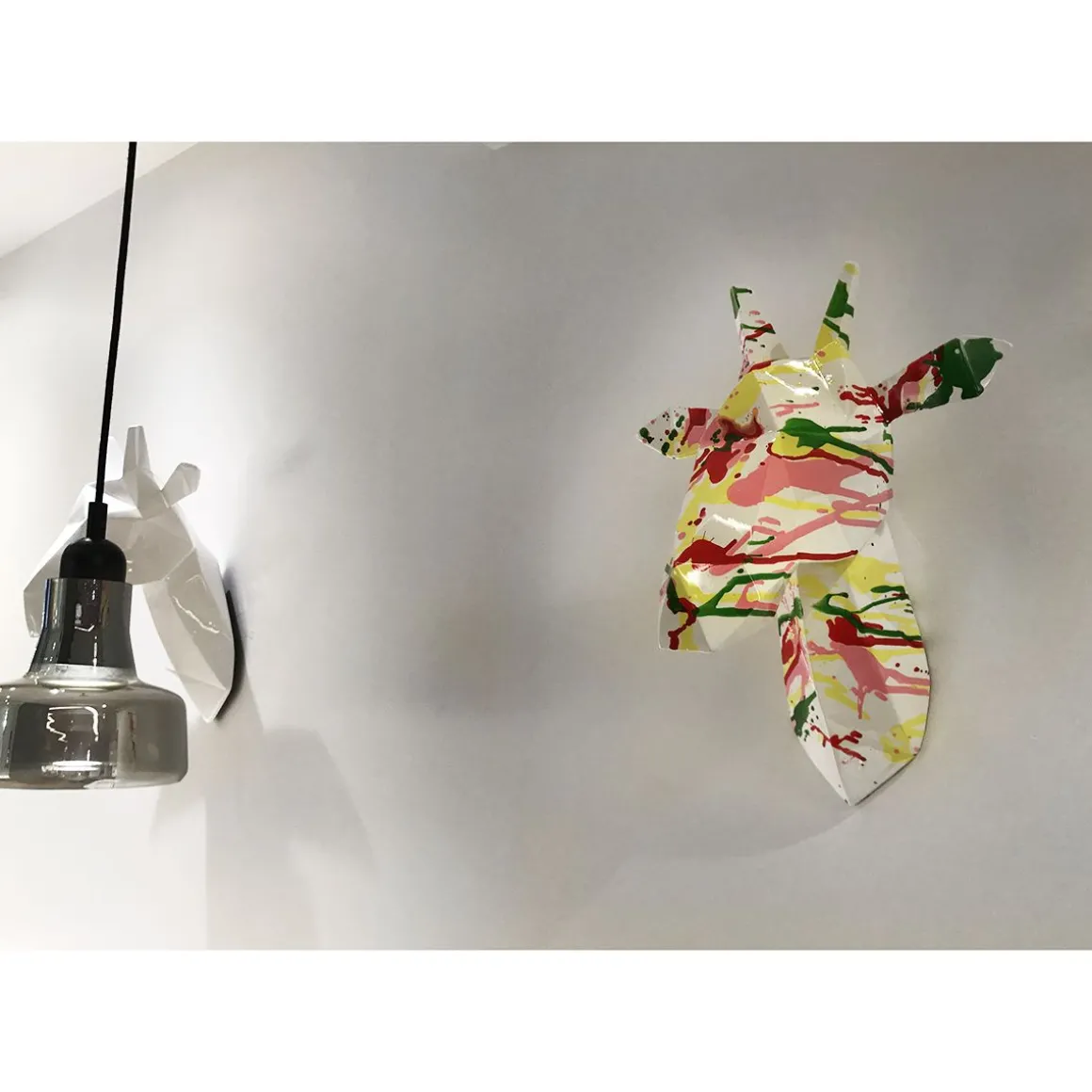 Tête de griafe à fixer au mur, sculpture d’un girafon origami