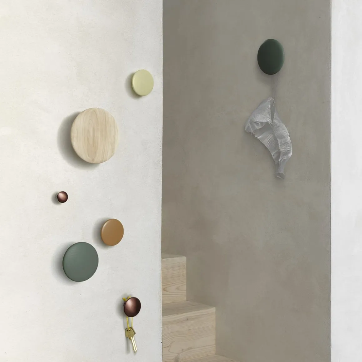 The dots ce sont 5 patères aux lignes arrondies et douces pour prendre soin de ses habits. De plus avec sa matière naturelle the dots s’intègre dans n’importe quel intérieur. Indépendants les uns des autres vous pourrez former votre porte manteau personnalisé en les fixant comme vous voulez sur votre mur. The dots allient design et praticité.