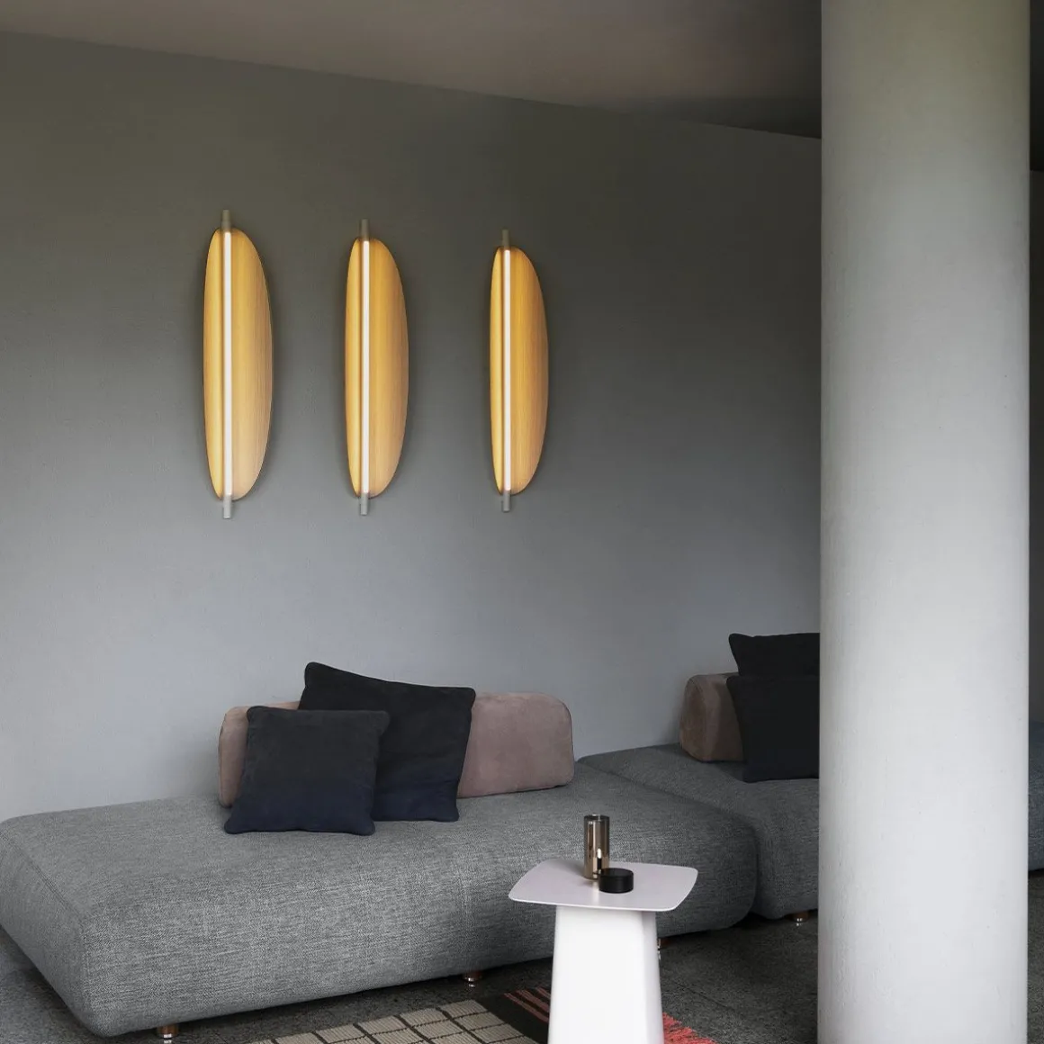 Conçues par Federica Biasi, les appliques et suspensions Thula reposent sur un élément central simple et architectural à fonction éclairante auquel s’ajoute un composant organique en bois ou en cuir matelassé dans un habile jeu d’addition et de soustraction. Se compose d’une LED dimmable linéaire ; dans la version murale simple, il peut être orienté, donnant ainsi une lumière directe ou indirecte.