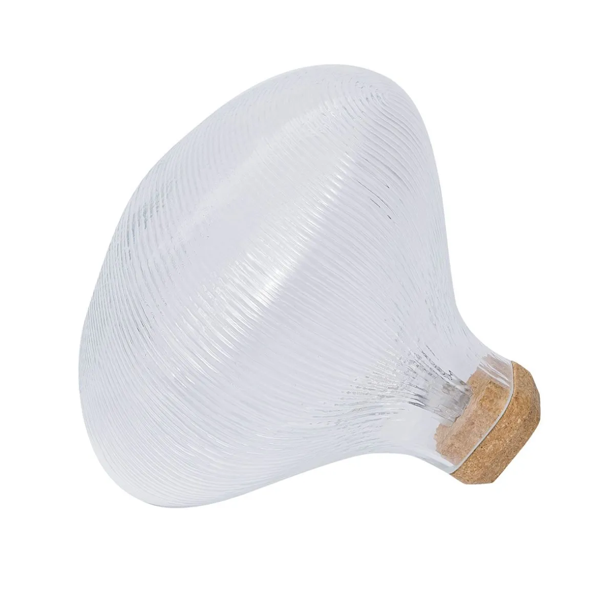 Tidelight de Petite Friture par Pierre Favresse. Soufflé à la bouche dans un moule, Tidelight est un luminaire de série, où chaque lampe conserve une singularité. Le verre texturé, qui reprend les codes de l’industrie automobile, enveloppe l’ampoule et amplifie sa diffusion, en offrant une lumière d’ambiance chaleureuse ; épais, il permet de poser la lampe au sol ou sur un meuble.