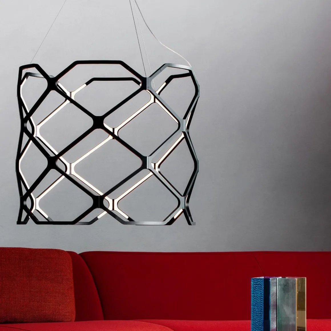 Titia de Nemo, par le designer Arihiro Miyake, est une suspension LED à intensité variable à la silhouette délicate, conçue pour créer une lumière diffuse et homogène. Elle est composée de trois modules identiques moulés en ABS équipés de raccords rapides pour une fermeture pratique.