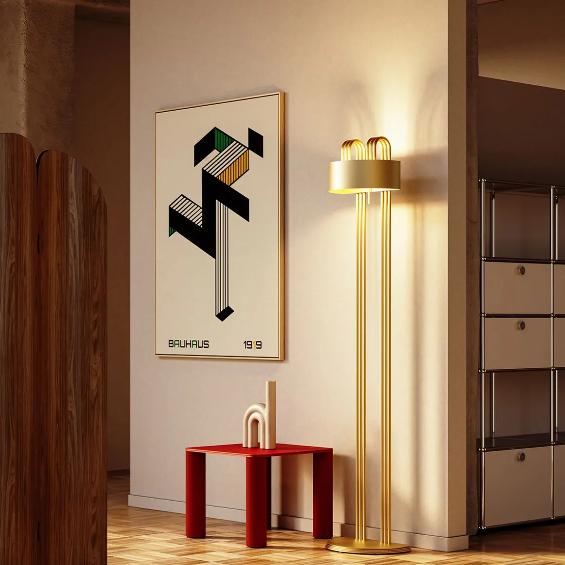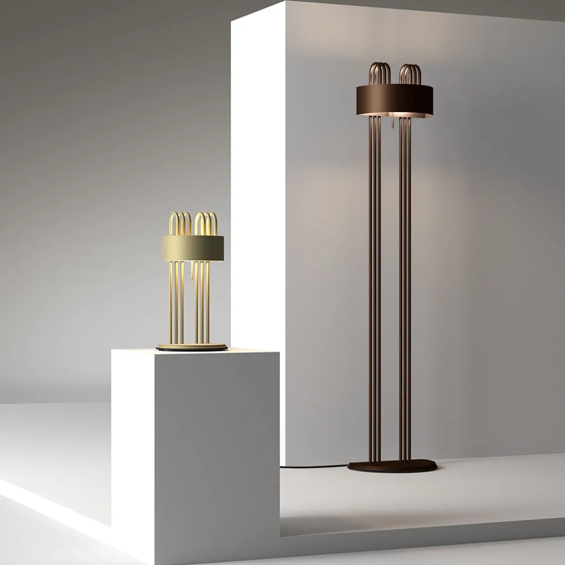 Le plasticisme et la rigueur se combinent à une esthétique moderniste pour créer l’élégance du design : la série TMB est à l’origine un hommage au grand architecte et designer hongrois Marcel Breuer, l’un des principaux représentants du mouvement Bauhaus. Breuer a conçu une version de table de cette lampe pour l’Exposition Universelle de Paris en 1925. LC a produit une version de sol et une version de table avec d’élégantes finitions en laiton satiné et en bronze.