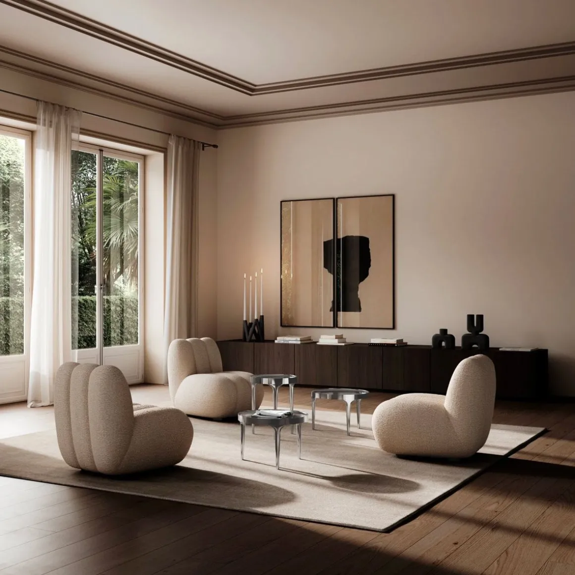 Hommage au design futuriste et à l’ère spatiale des années 70, Toe est une chaise longue à l’esthétique expressive et au confort d’assise élevé. Caractérisée par une approche sculpturale de la conception de meubles, la Toe Chair est dotée d’un épais revêtement cannelé allant de l’assise au dossier, créant une forme linéaire et volumineuse. La forme ouverte de la chaise offre une expérience d’assise libre et facile, tandis que la combinaison spéciale de différents types de mousse assure un confort d’assise global élevé. Toe Chair est disponible en quatre variantes de revêtement différentes. Lin craie avec un aspect naturel et texturé, Off-White Bouclé ajoutant une sensation chic et tactile, Off-white Sheepskin pour une sensation douce et chaleureuse et Sunproof Taupe pour une utilisation résistante aux taches, au soleil et à l’eau.