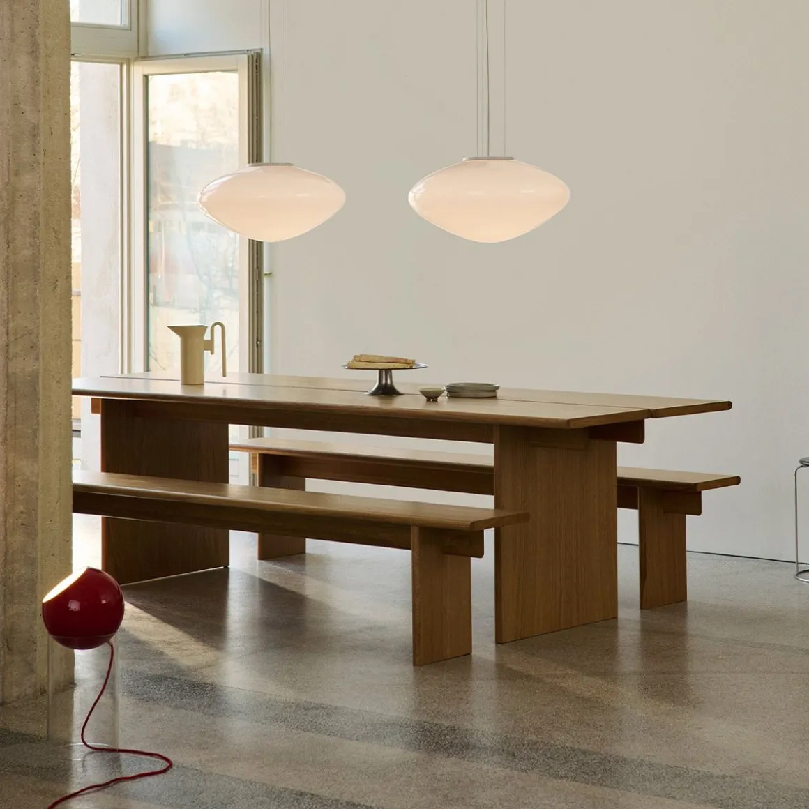 Conçue à l’origine en 1959 comme une suspension, la lampe de table Topan apporte une nouvelle perspective à l’une des formes les plus reconnaissables de Verner Panton, la transformant en une lumière sculpturale et autonome qui joue avec la transparence et la légèreté.