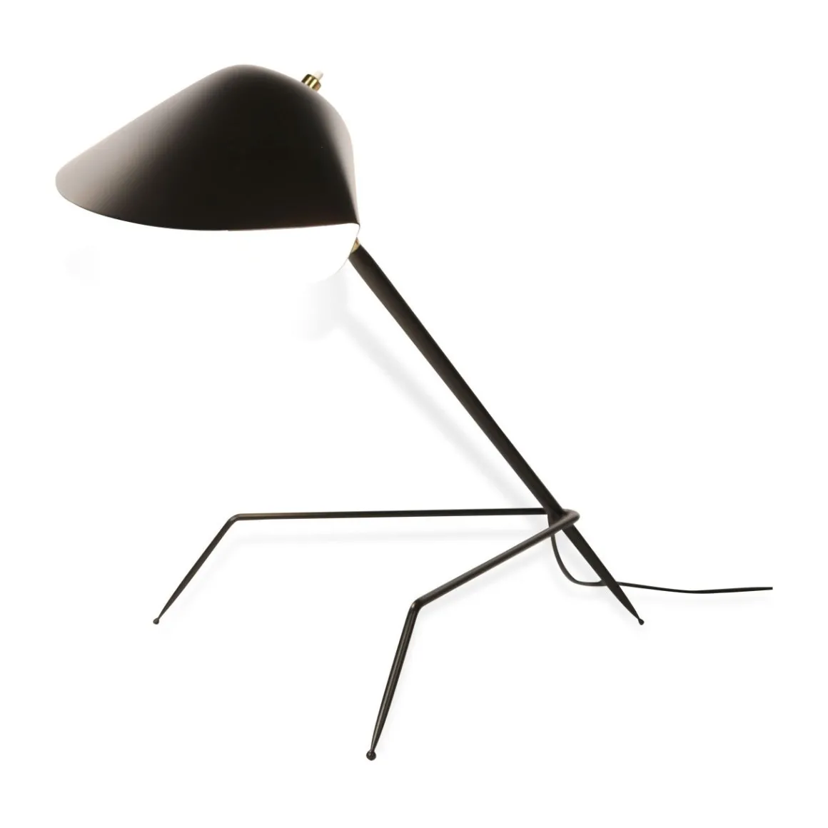Lampe de table ou de bureau avec trépied créé par Serge Mouille en 1953 et réédité par sa femme Gin Mouille. Le réflecteur est orientable sur rotule, chaque pièce est numérotée sur la douille et un certificat est joint.