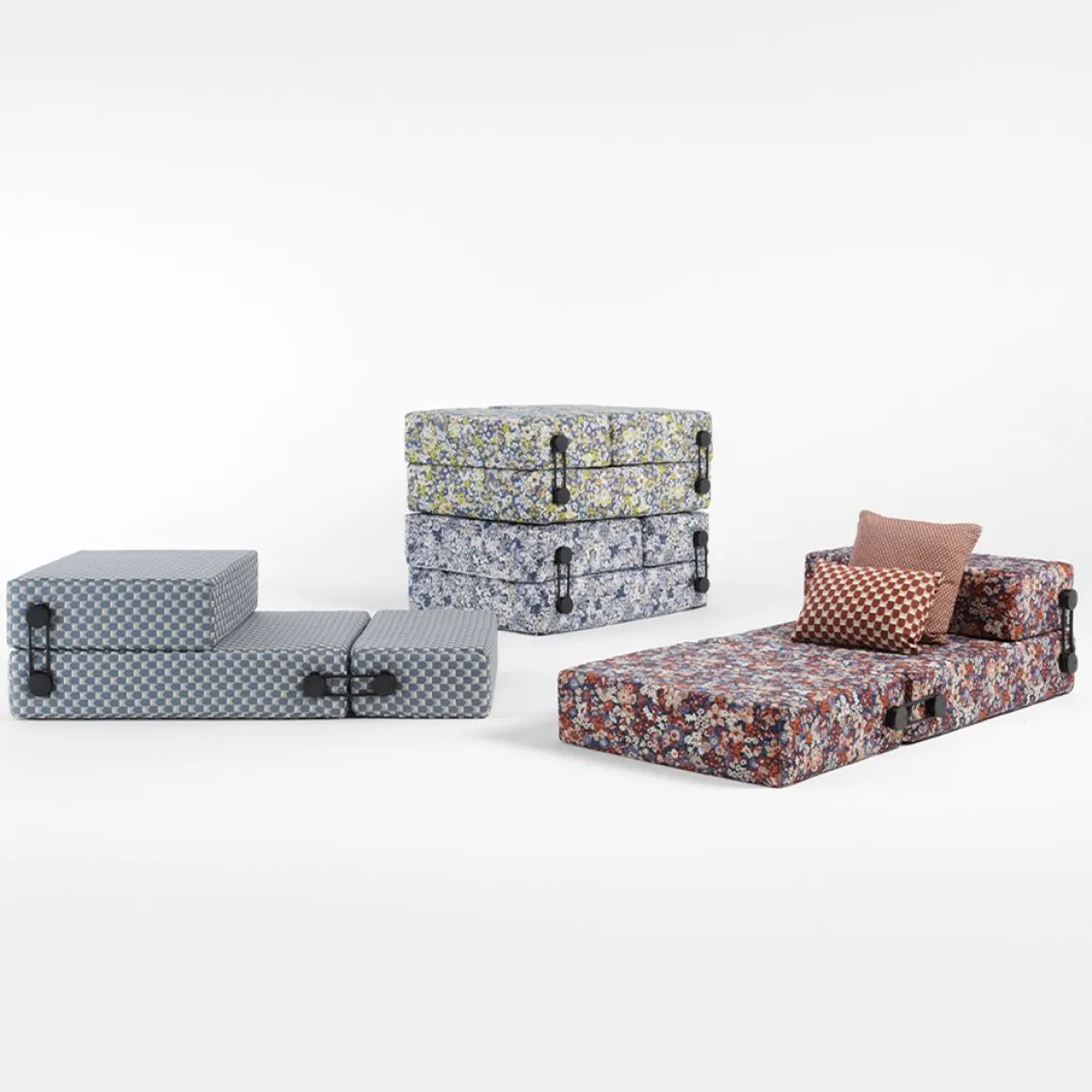 Le canapé Plastics, le pouf Trix de Piero Lissoni et le fauteuil Cara de Philippe Starck se présentent sous un nouveau jour avec des tissus Liberty spécialement étudiés pour les espaces extérieurs. Ces tissus confèrent une nouvelle dimension esthétique et fonctionnelle aux produits, en garantissant un bon niveau de résistance et de durabilité, même dans les environnements extérieurs. Avec deux motifs géométriques et un motif floral, cette collection de meubles d’extérieur offre un mélange unique de style et de confort, pour profiter de l’été avec élégance et sous le signe de la détente. Chaque pièce, du canapé au pouf en passant par le fauteuil, devient ainsi un bel élément pour meubler les espaces extérieurs avec goût et raffinement, tout en offrant une agréable expérience de détente en plein air. Disponible dans les palettes de couleurs vert sauge, rouille, beige, jaune et bleu.
