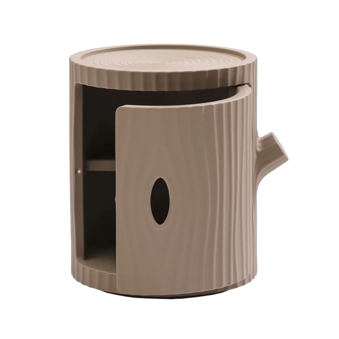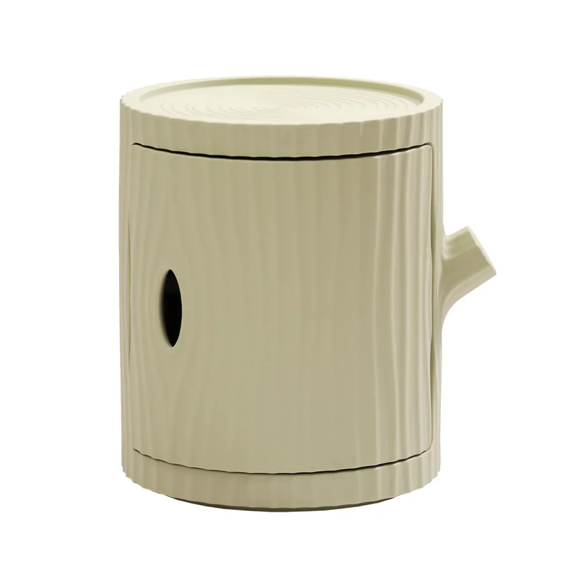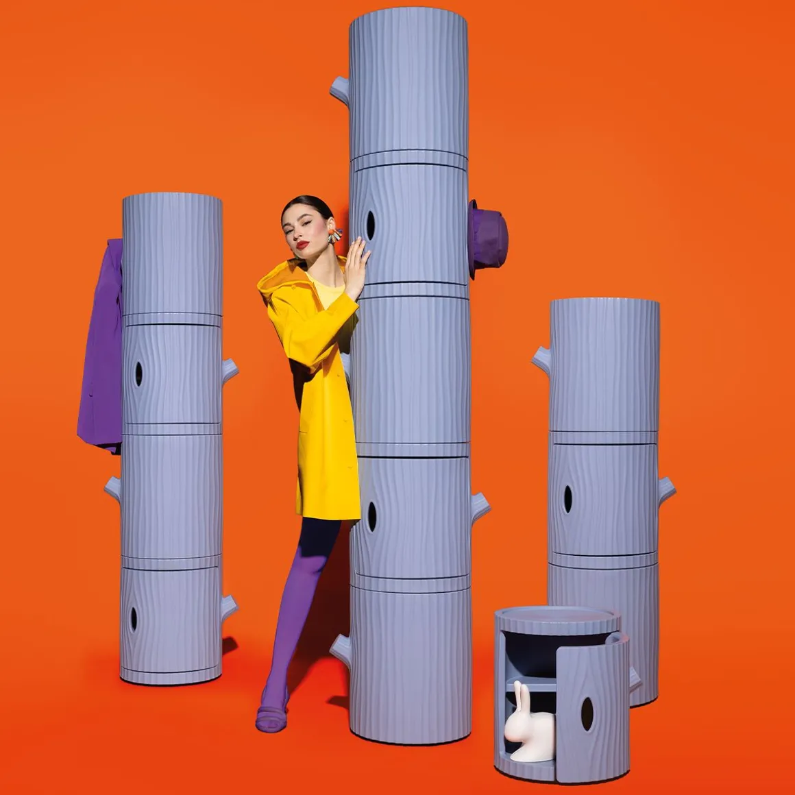 Conçu par Furf, Tronco est un conteneur multifonctionnel inspiré de la forme d’un tronc d’arbre. Fabriqué en polyéthylène recyclable, il sert d’unité de rangement et offre une solution pour ranger l’essentiel ou y déposer des objets. Son design empilable permet d’empiler plusieurs unités Tronco, formant ainsi un arbre sculptural qui peut également servir à suspendre vêtements et serviettes. Il s’adapte parfaitement à différents environnements : chambre, salle de bain, salon, terrasse et bien plus encore. Des roulettes et un système magnétique permettent d’empiler les unités en colonnes plus hautes.