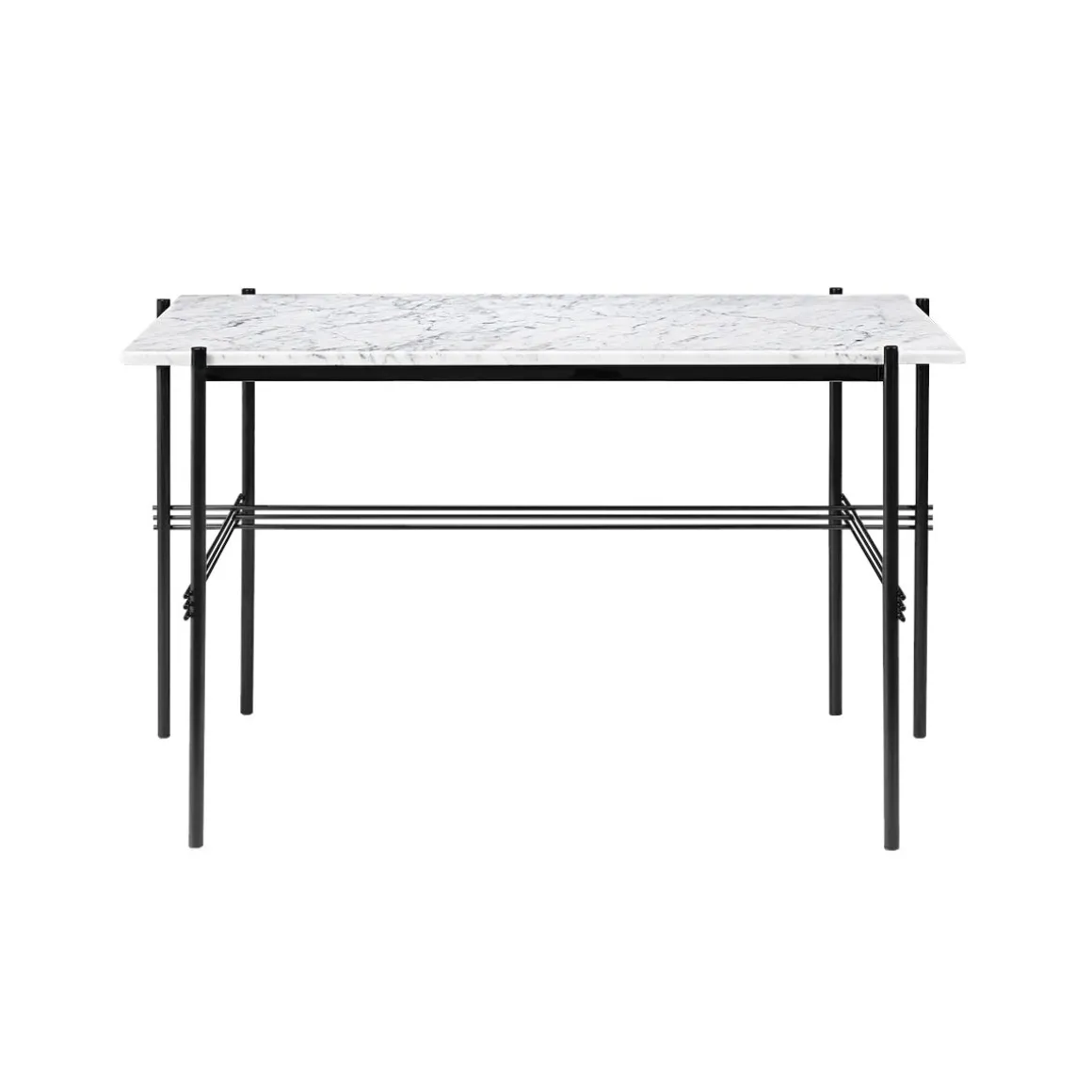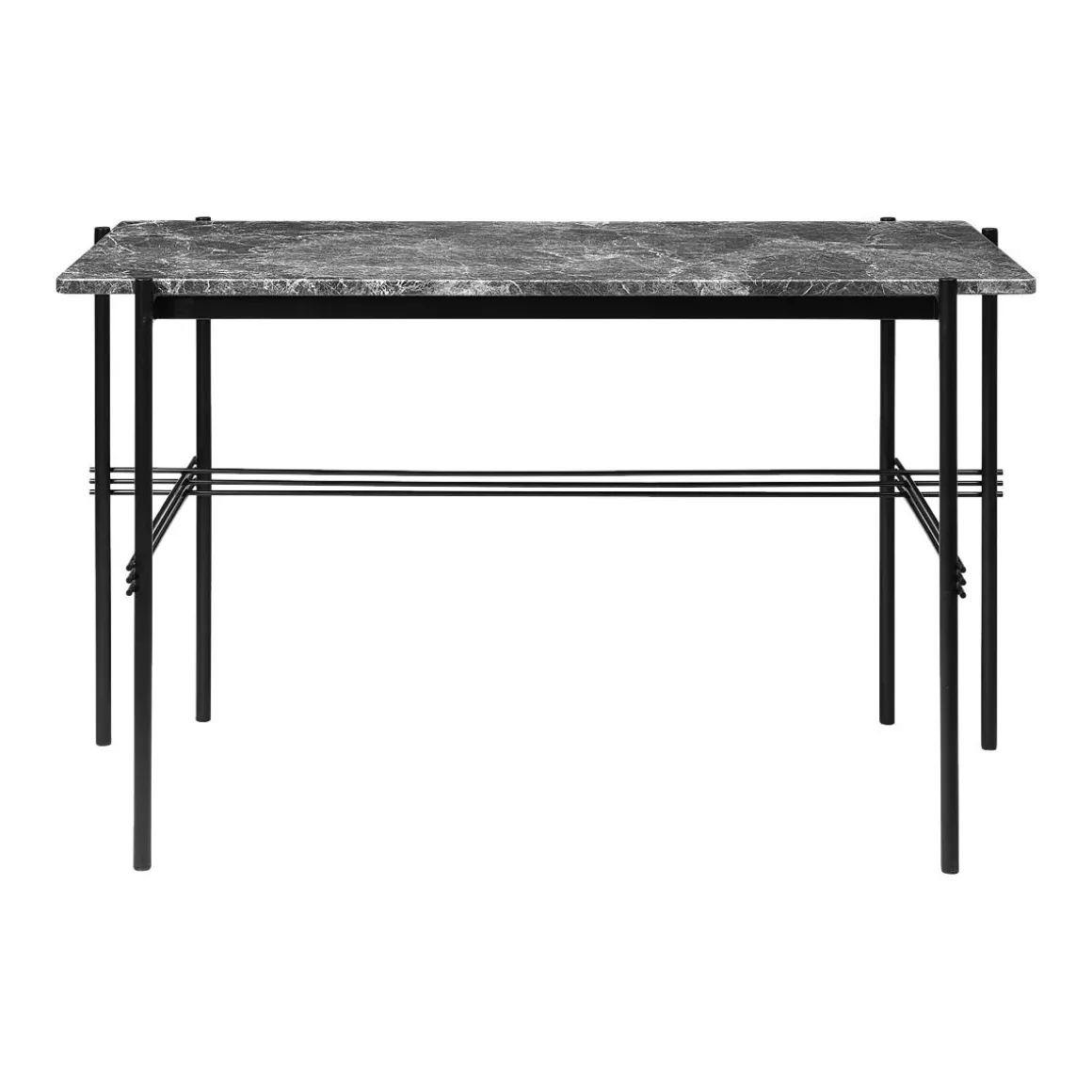 TS Bureau Marbre de Gubi. Jouant avec le contraste d’un plateau solide et des pieds en métal minces caractéristiques avec un passage minutieux, le bureau TS est un bureau moderne et stylistiquement pur parfaitement adapté pour un espace de bureau où la sensation de la maison est recherchée.