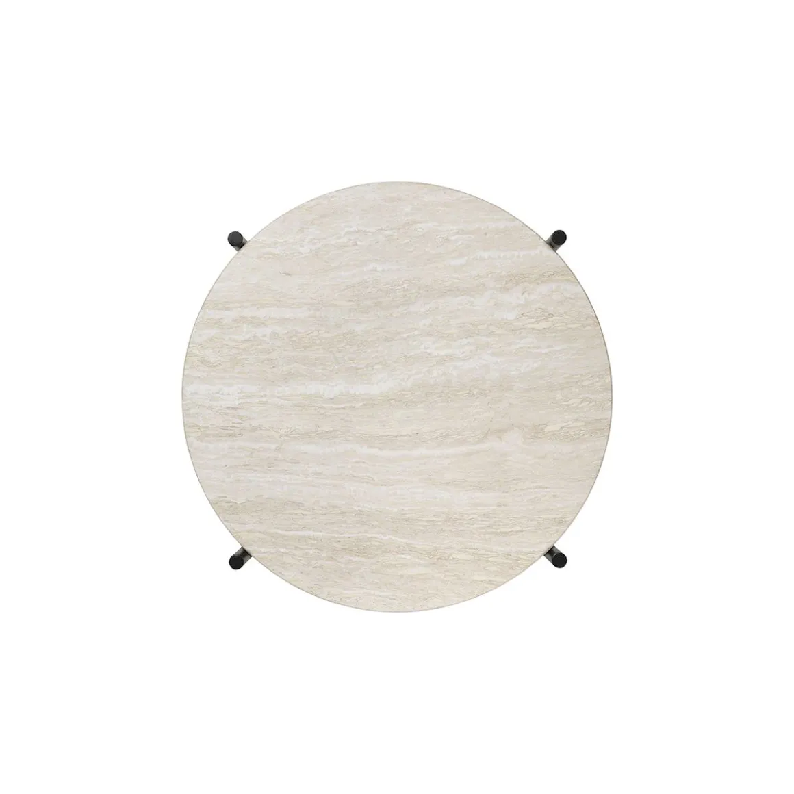 Ts Outdoor Side Table de Gubi. La collection TS est déjà bien connue et appréciée des amateurs de design pour sa capacité à s’adapter à tous les intérieurs et toutes les ambiances. Maintenant, les tables d’appoint et basses TS à base noire reçoivent le traitement extérieur. Les plateaux de table luxueux, en travertin blanc magnifiquement veiné, complètent les bases géométriques pointues en acier inoxydable enduit de poudre et permettent à l’esthétique intérieure élégante de la collection de franchir le seuil à l’air libre.