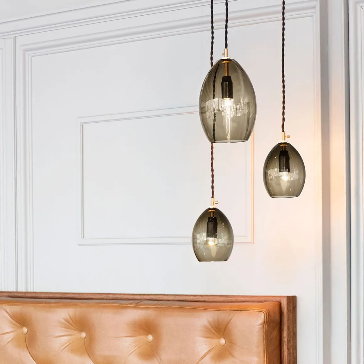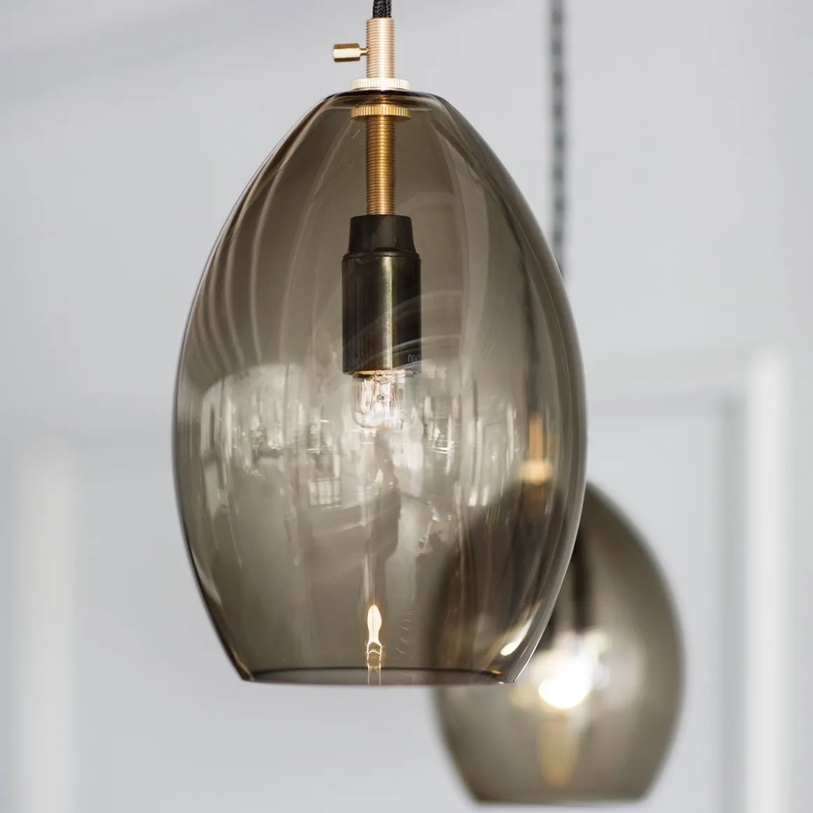 Unika est une série de petites suspensions en verre soufflées bouche conçue à l’origine pour le restaurant Grønbech et Churchill à Copenhague. Sa base simple est fait de laiton massif, un détail qui donne à la lampe un look industriel propre, faisant un contraste frappant avec la fragilité de l’abat-jour fait main. L’abat-jour est disponible en deux tailles : 135 mm et 200 mm (hauteur), et suspendu à un fil de tissu noir torsadée.