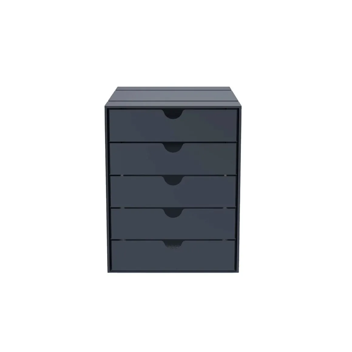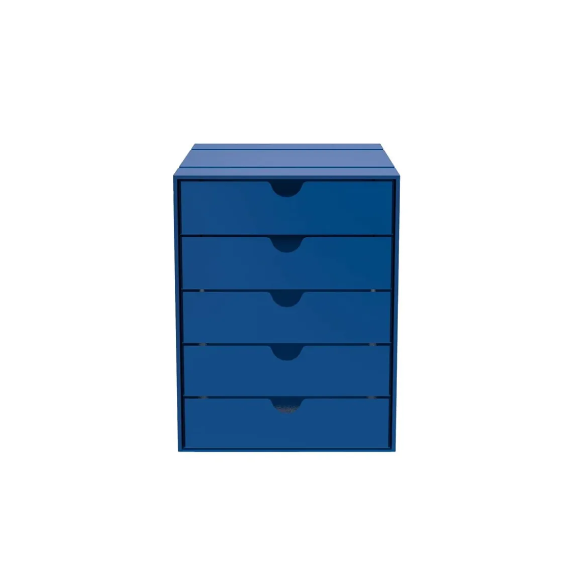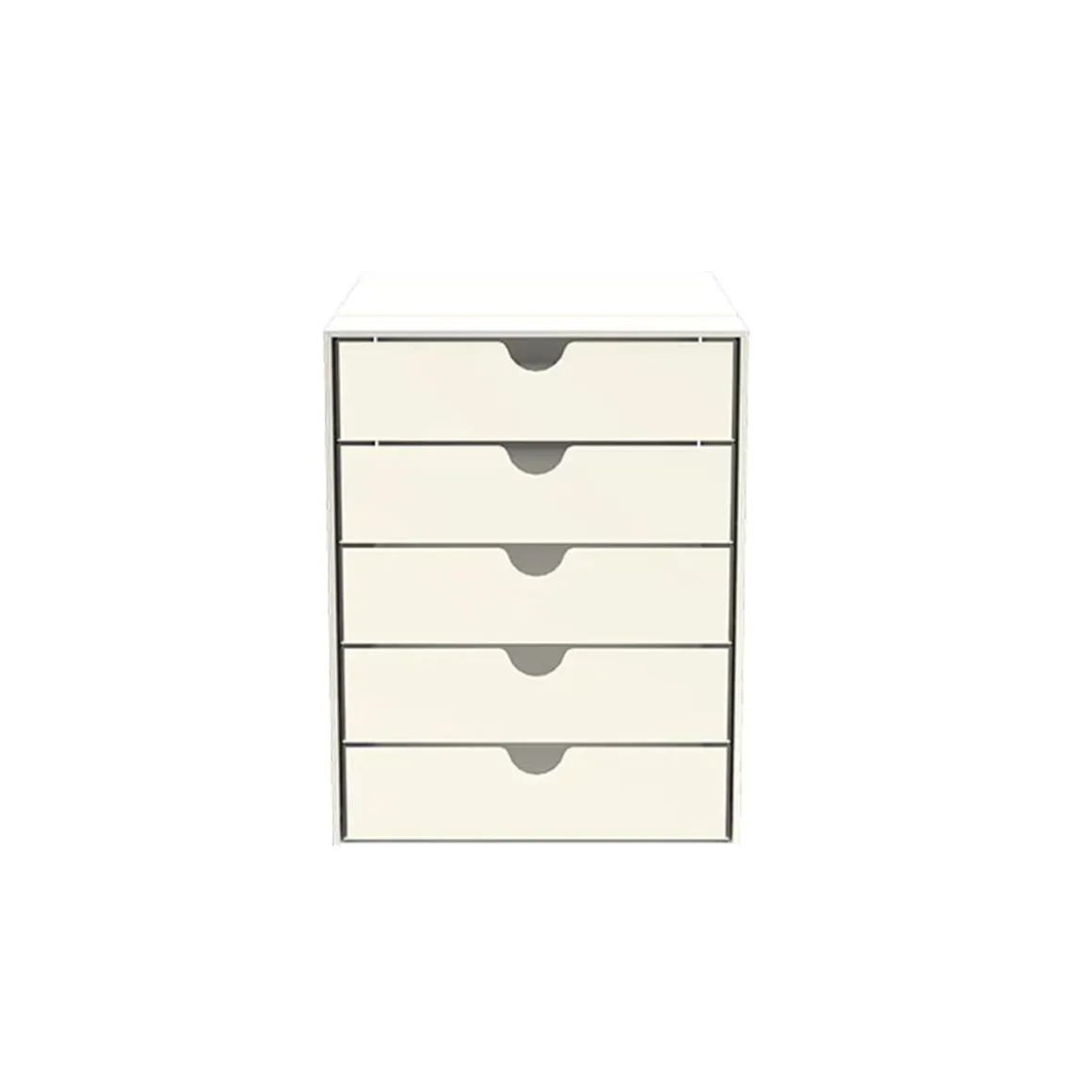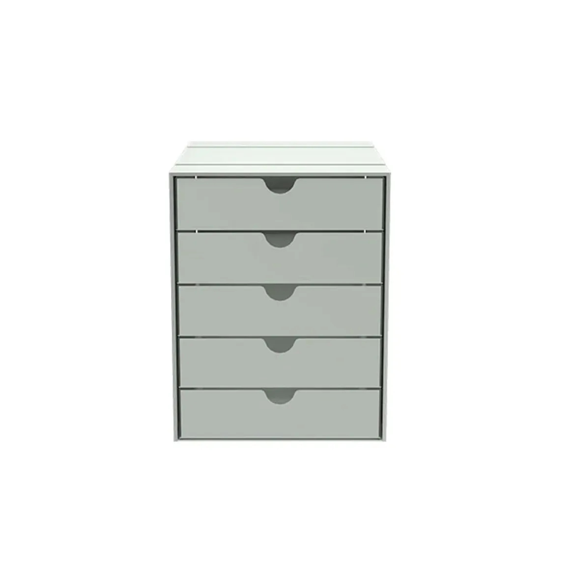 Cette solution de rangement de papeterie et de petits objets se marie à la perfection avec le mobilier USM Haller. Déclinée dans une nouvelle palette de coloris, elle vous permet d’apporter une touche élégante à vos meubles USM. Photo : USM boîte Inos, 5 tiroirs, avec jeu d’étiquettes à part.