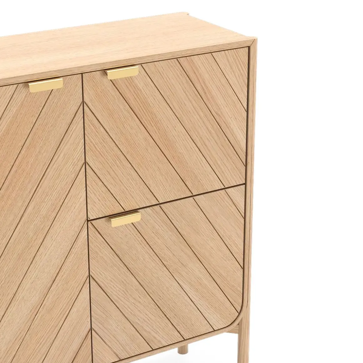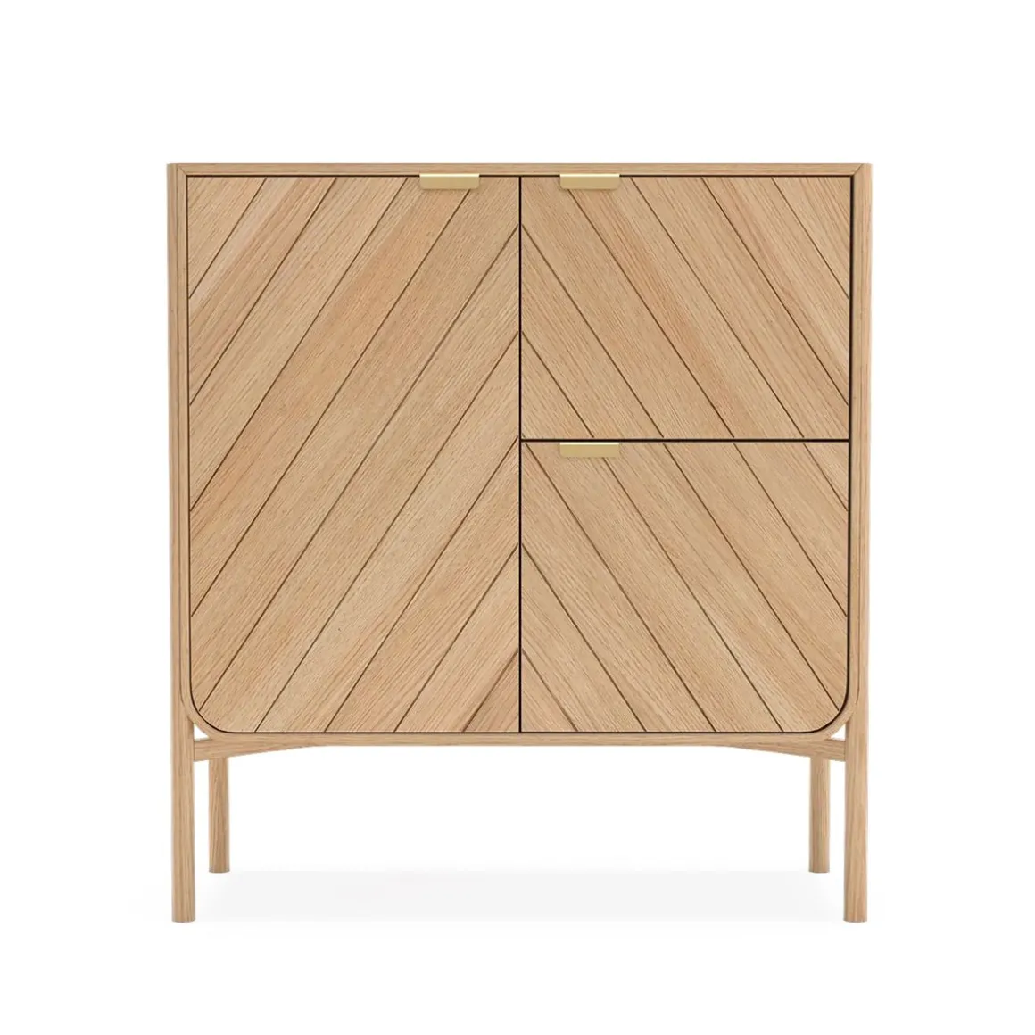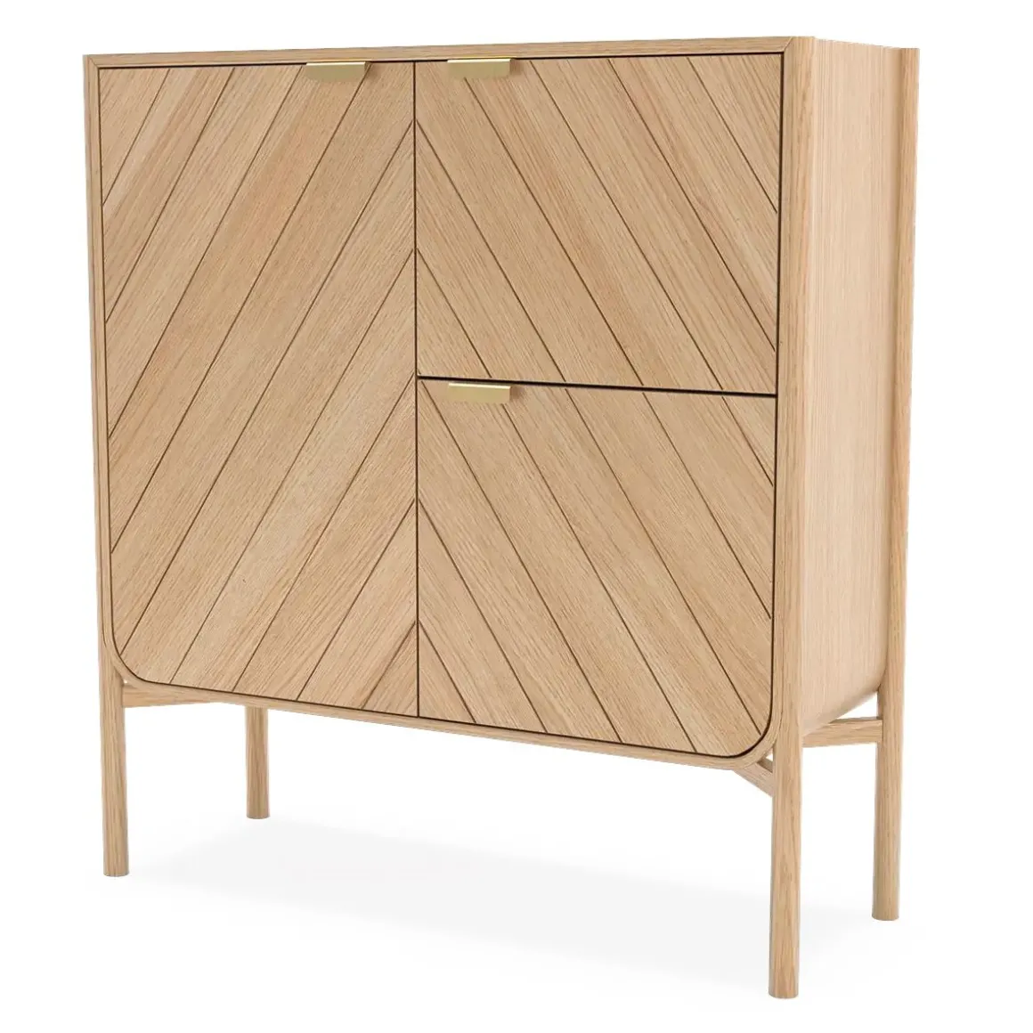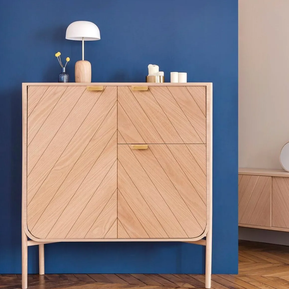Charmeur et solaire, le vaisselier Marius a fière allure. Son design à la fois rétro et contemporain l’impose en vaisseau amiral de votre pièce de vie. Impossible, comme dans un romain de Pagnol, de résister à la beauté irradiante de Marius. Marius s’apparente à la coque d’un bateau et les rainures géométriques sur sa façade semblent dessiner la voile du pavillon. Sa cale est divisée en trois compartiments fermés par des portes à charnières et, derrière chacune d’elle, une ou plusieurs étagères vous permettent de ranger votre belle vaisselle. Fabriqué au Portugal dans un atelier d’ébénisterie, en plaqué chêne (naturel ou teinté noir) ou noyer, Marius est soutenu par un superbe piètement croisé, une structure de quatre mâts en bois massif. Marius est une création du designer français de Pierre-François Dubois.