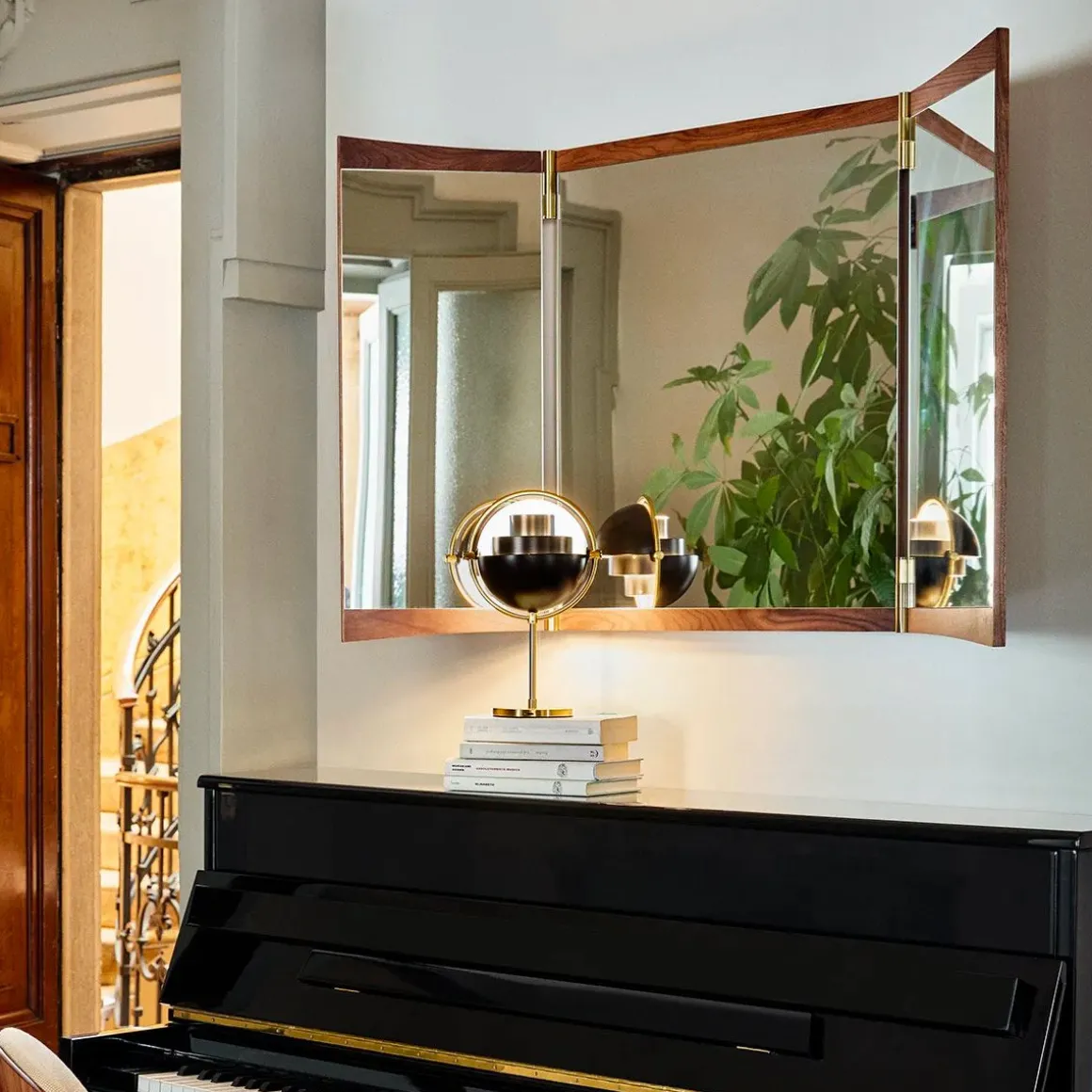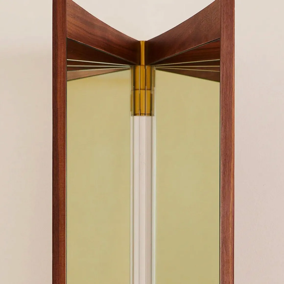 Vanity miroir de Gubi par GamFratesi. Echo contemporain du miroir de coiffeuse du XVIIIe siècle qui lui donne son nom, la collection Vanity Mirror est le deuxième miroir mural conçu par GamFratesi pour GUBI. Les caractéristiques déterminantes du design sont son placage en noyer chaleureux et ses charnières en laiton. Ceux-ci permettent d’ajuster l’angle du miroir, influençant la perspective qu’il offre et les jeux de lumière dans la pièce. Sur le miroir vanity 1 à panneau unique, les charnières permettent une rotation de 15°, tandis que les charnières de 180° du miroir vanity 2 et du miroir vanity 3 permettent aux panneaux de se replier.