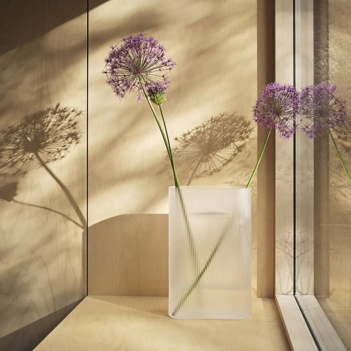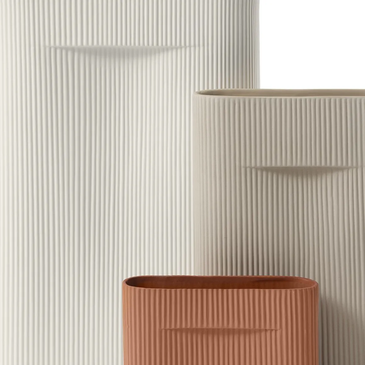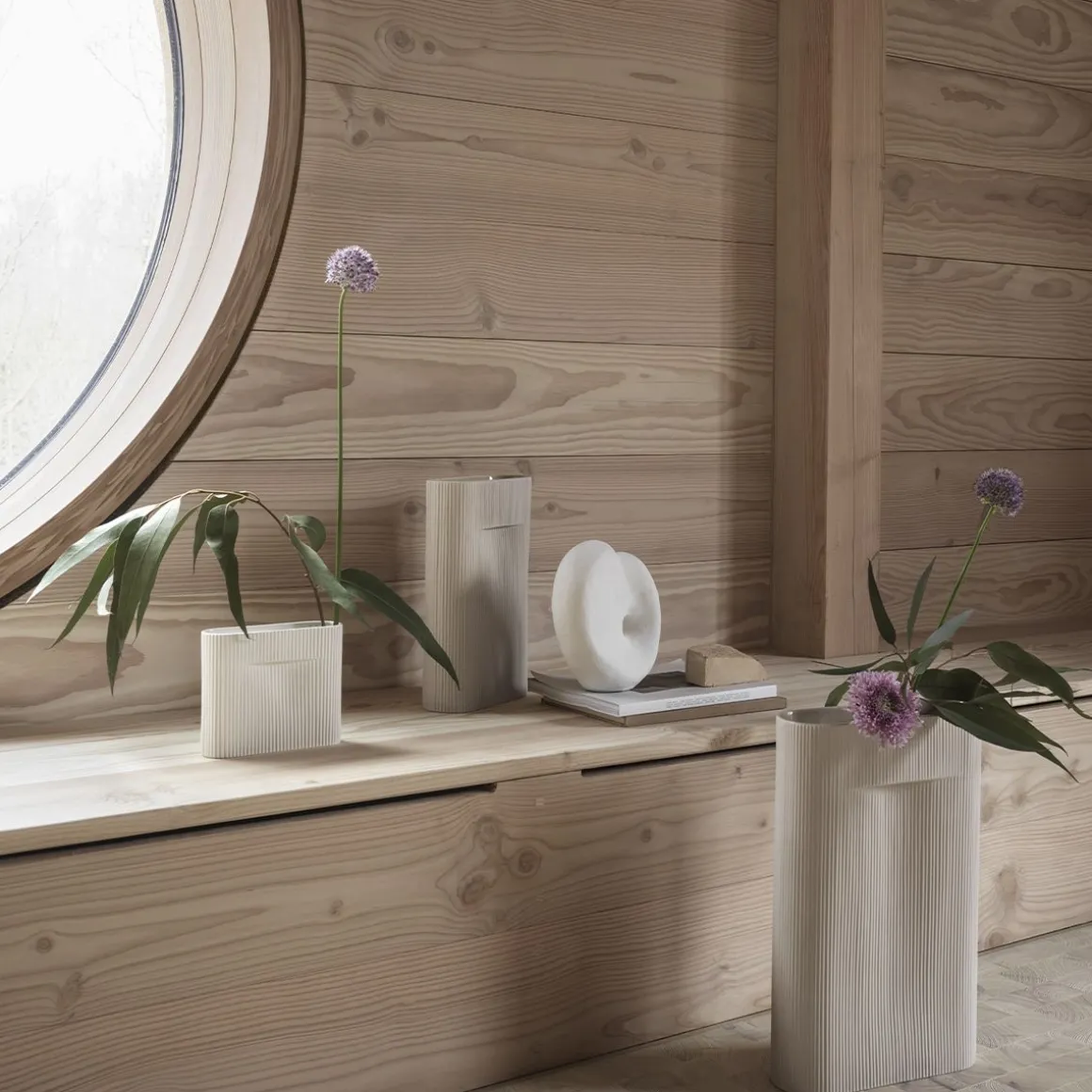 Ridge de Muuto. Le vase Ridge présente une nouvelle façon d’afficher les fleurs grâce à son expression sculpturale ainsi qu’un caractère astucieux lorsqu’il n’est pas utilisé. Le design présente des fonctionnalités supplémentaires grâce à sa dent raffinée, permettant aux fleurs de se tenir debout tout en fonctionnant comme une poignée subtile lors du déplacement du vase d’une pièce à l’autre.