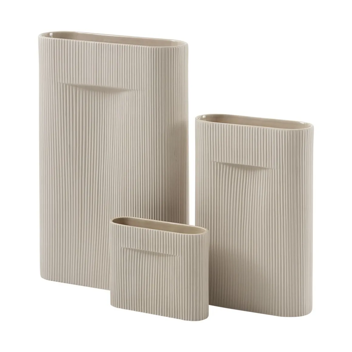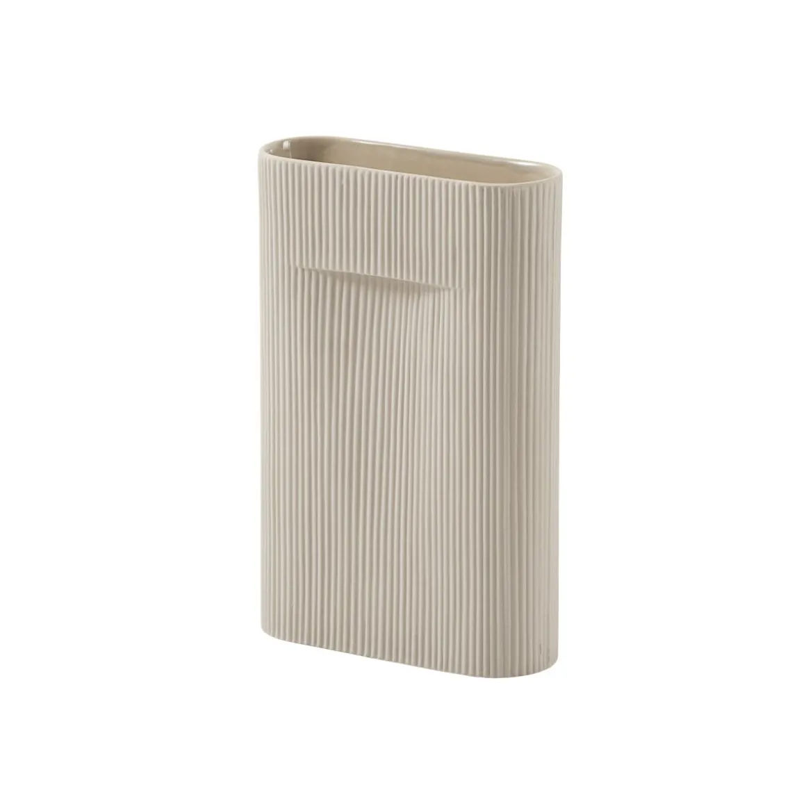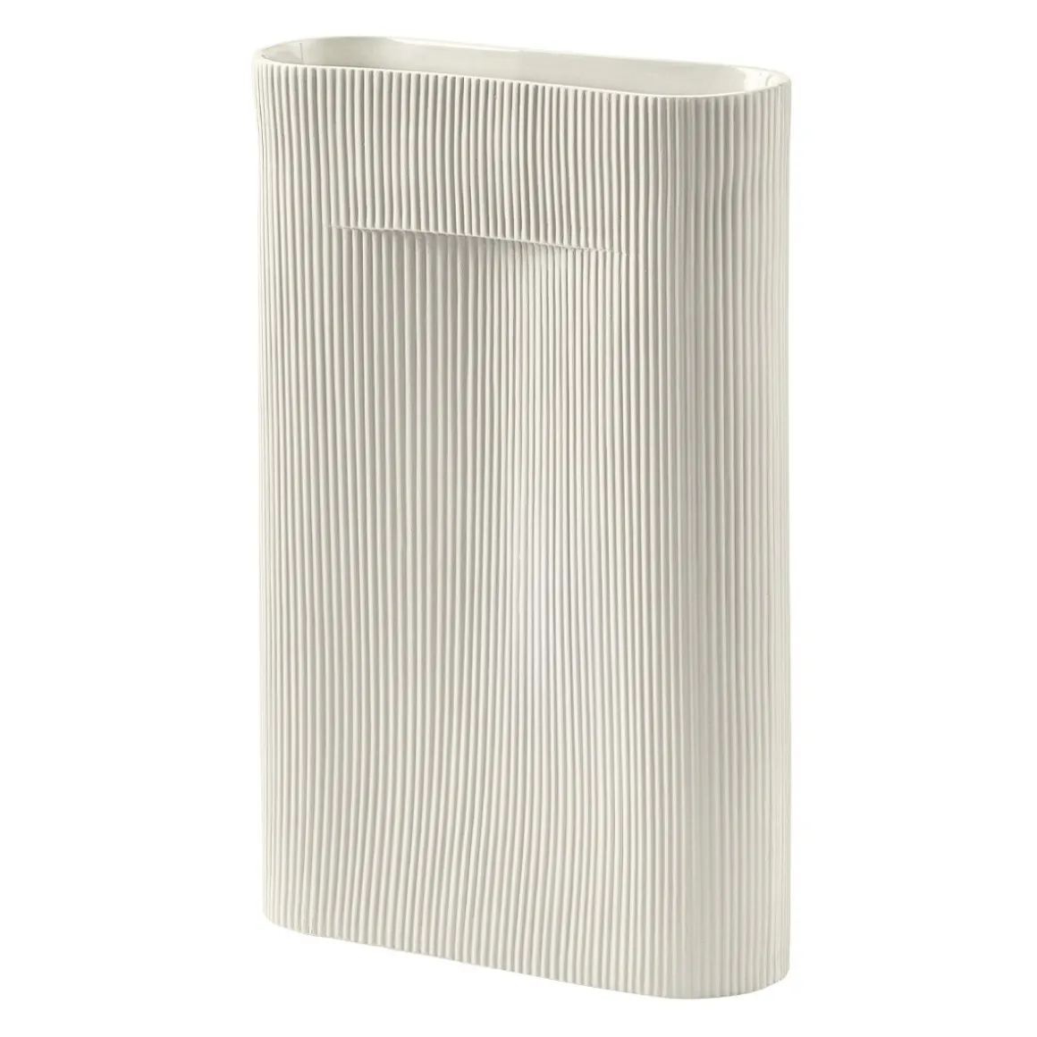 Ridge de Muuto. Le vase Ridge présente une nouvelle façon d’afficher les fleurs grâce à son expression sculpturale ainsi qu’un caractère astucieux lorsqu’il n’est pas utilisé. Le design présente des fonctionnalités supplémentaires grâce à sa dent raffinée, permettant aux fleurs de se tenir debout tout en fonctionnant comme une poignée subtile lors du déplacement du vase d’une pièce à l’autre.