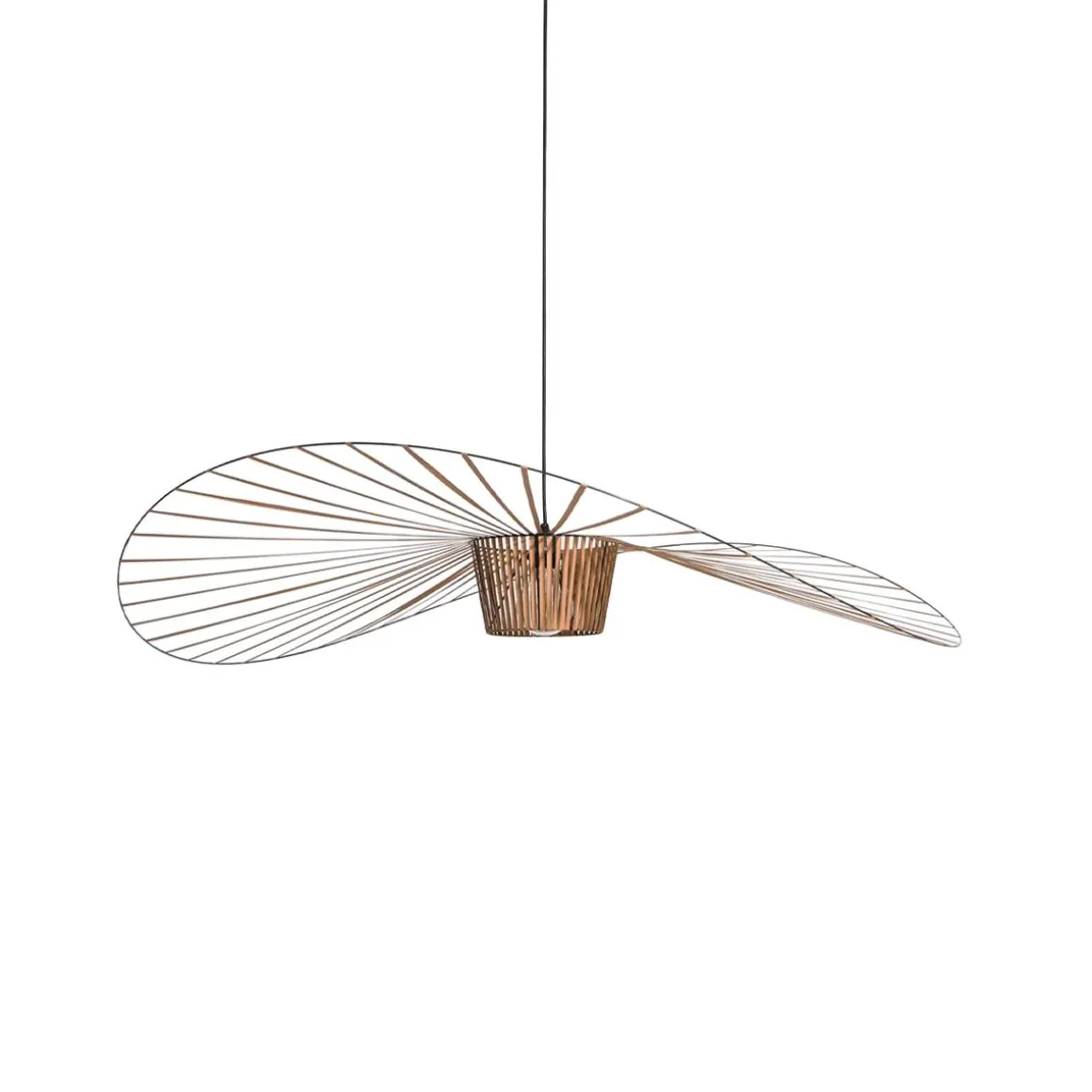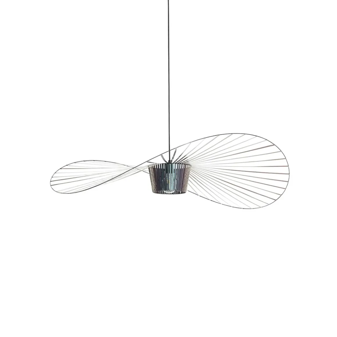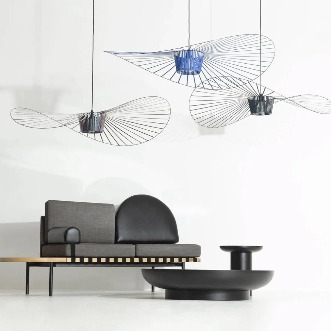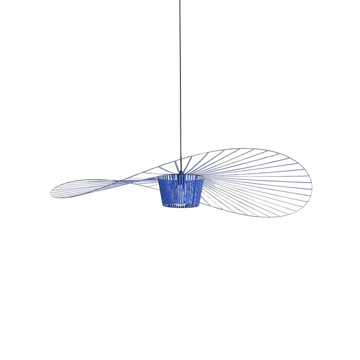 Vertigo Suspension – Ø 140 cm de Petite Friture par Constance Guisset. La suspension Vertigo est une « lampe cabane », selon les termes mêmes de son designer ; à la fois aérienne et graphique, elle s’adapte aux grands volumes comme aux petits, où elle recrée un espace propre et intime.