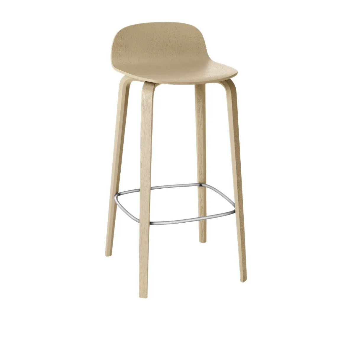 Avec son petit dossier incurvé et ses pieds longs et élégants, le tabouret de bar Visu s’adapte parfaitement à tout comptoir de cuisine ou bar de restaurant. Réalisée en chêne pressé, sa silhouette douce contraste avec la texture en bois pour une esthétique scandinave adoucie.